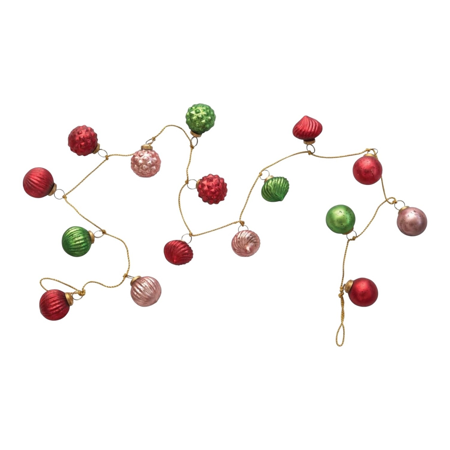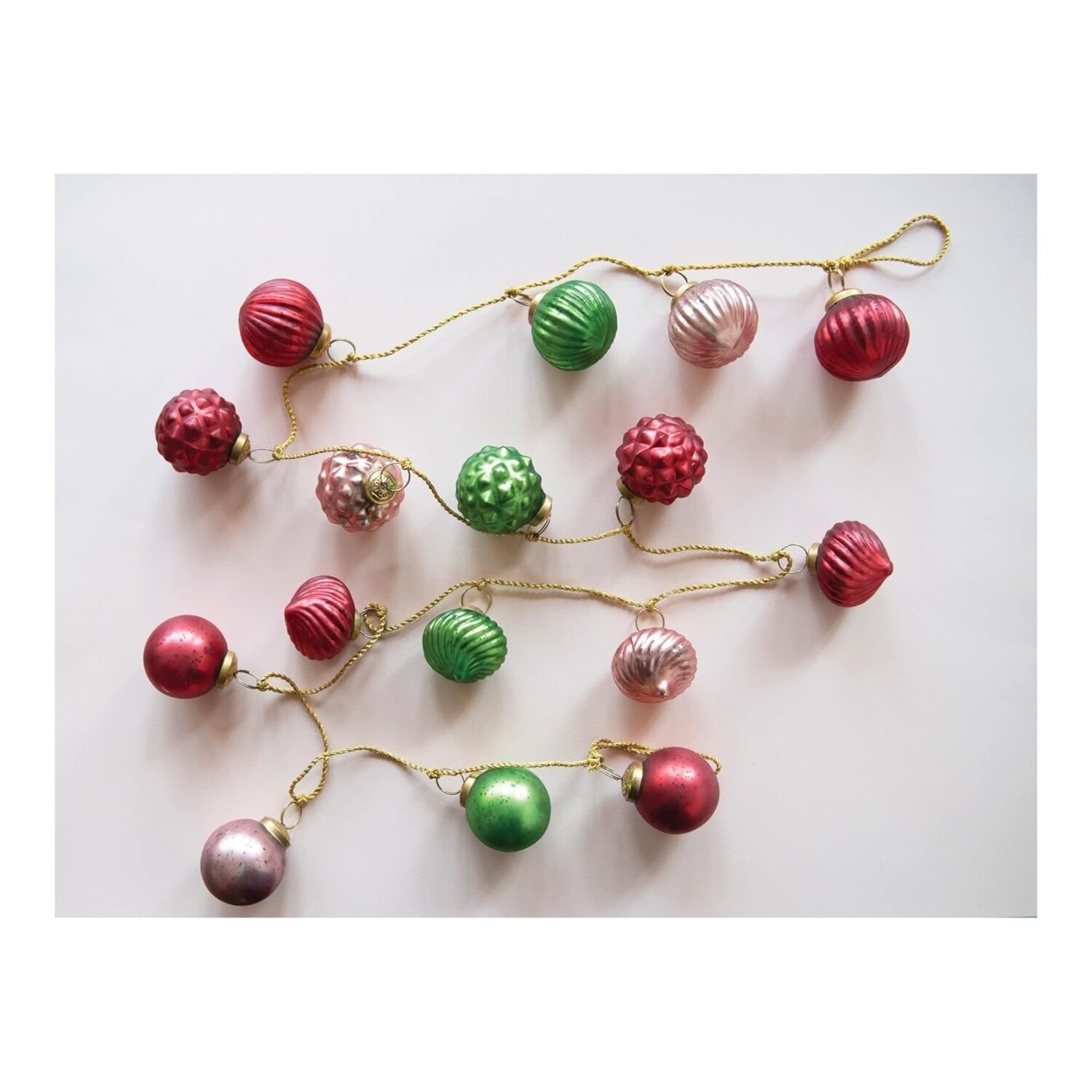 Garland | Mercury Glass Ornament | Red + Pink + Green | Gold Cord