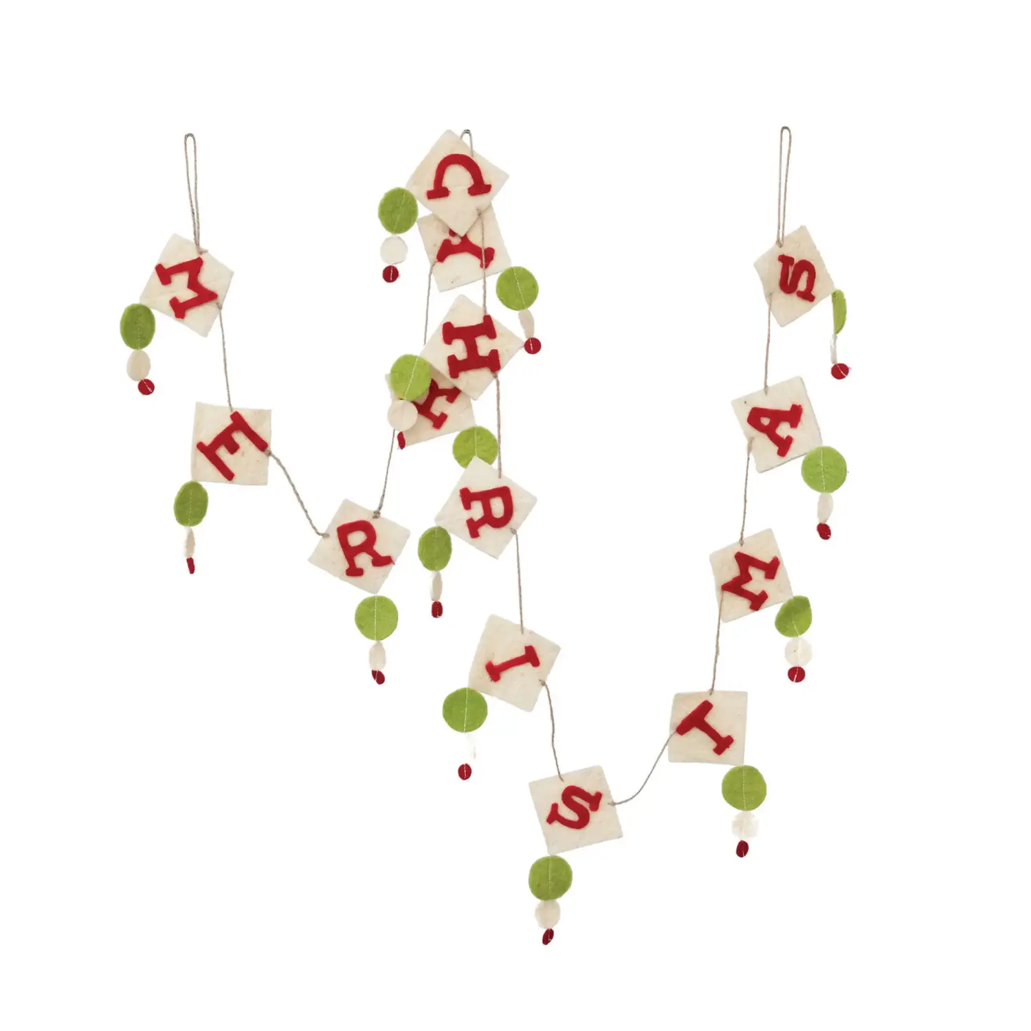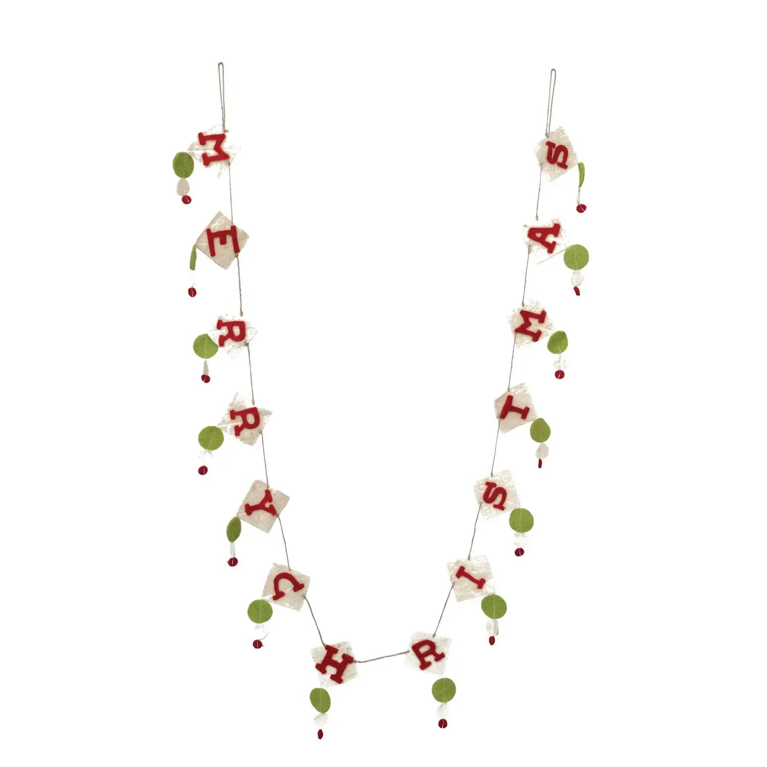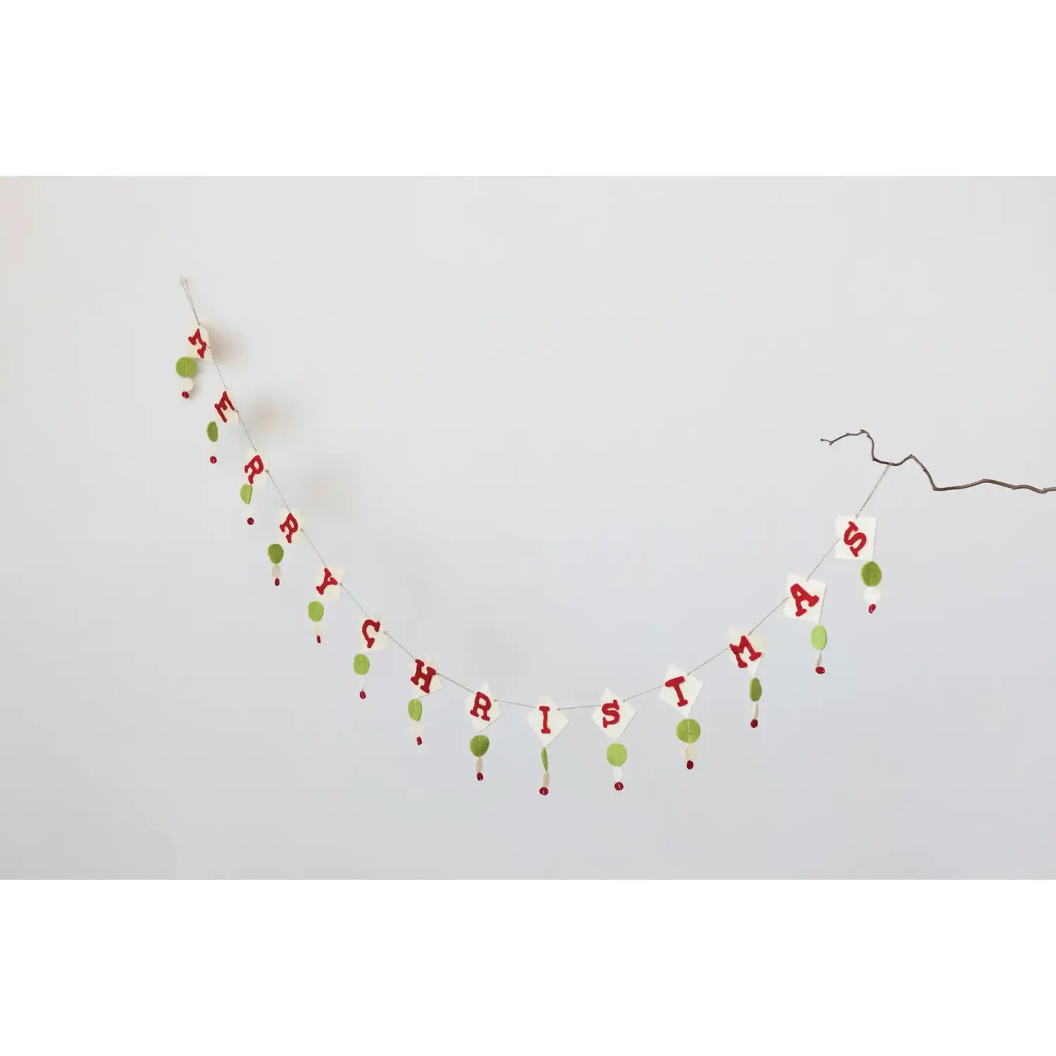 Garland | Wool Felt | "Merry Christmas" | Red + White + Green