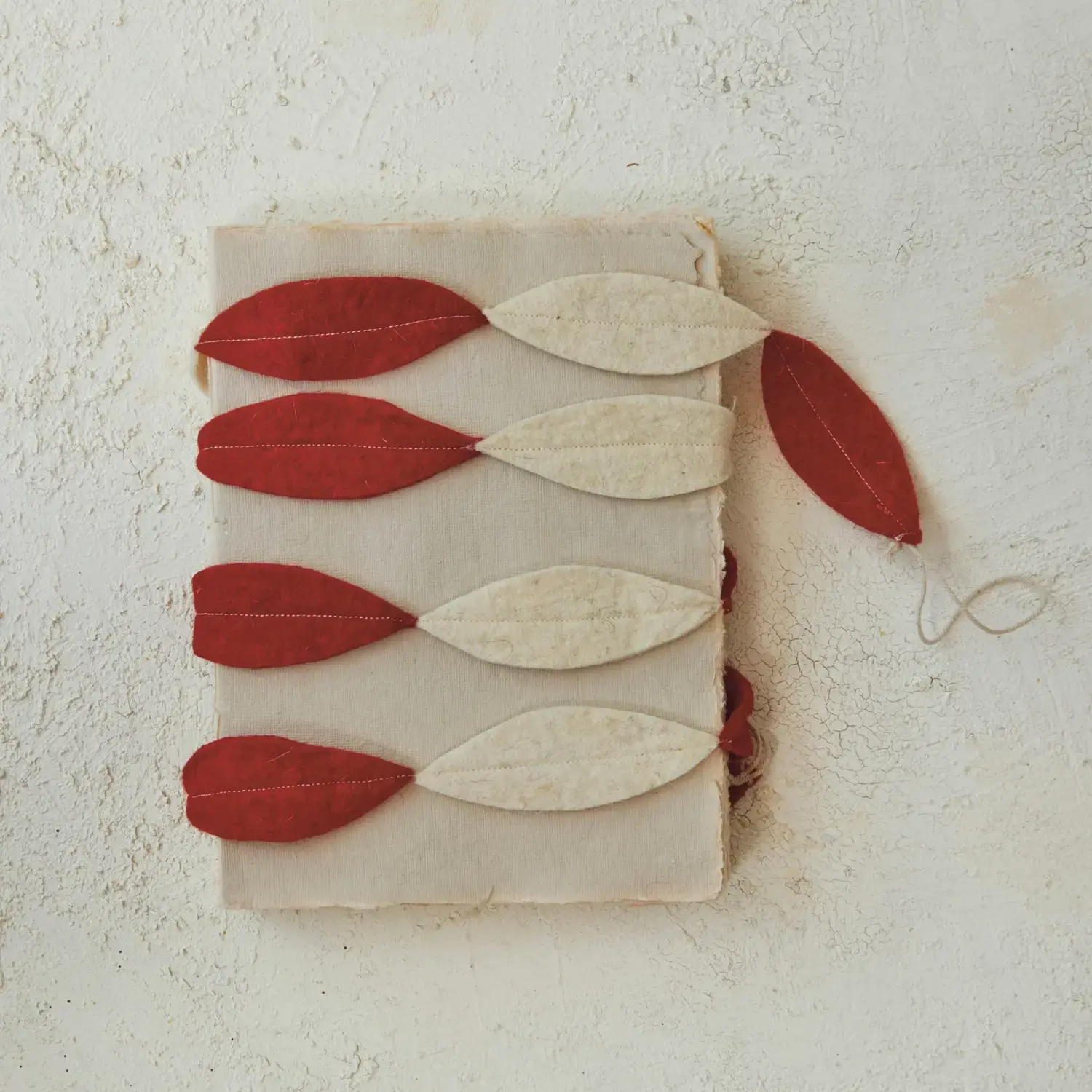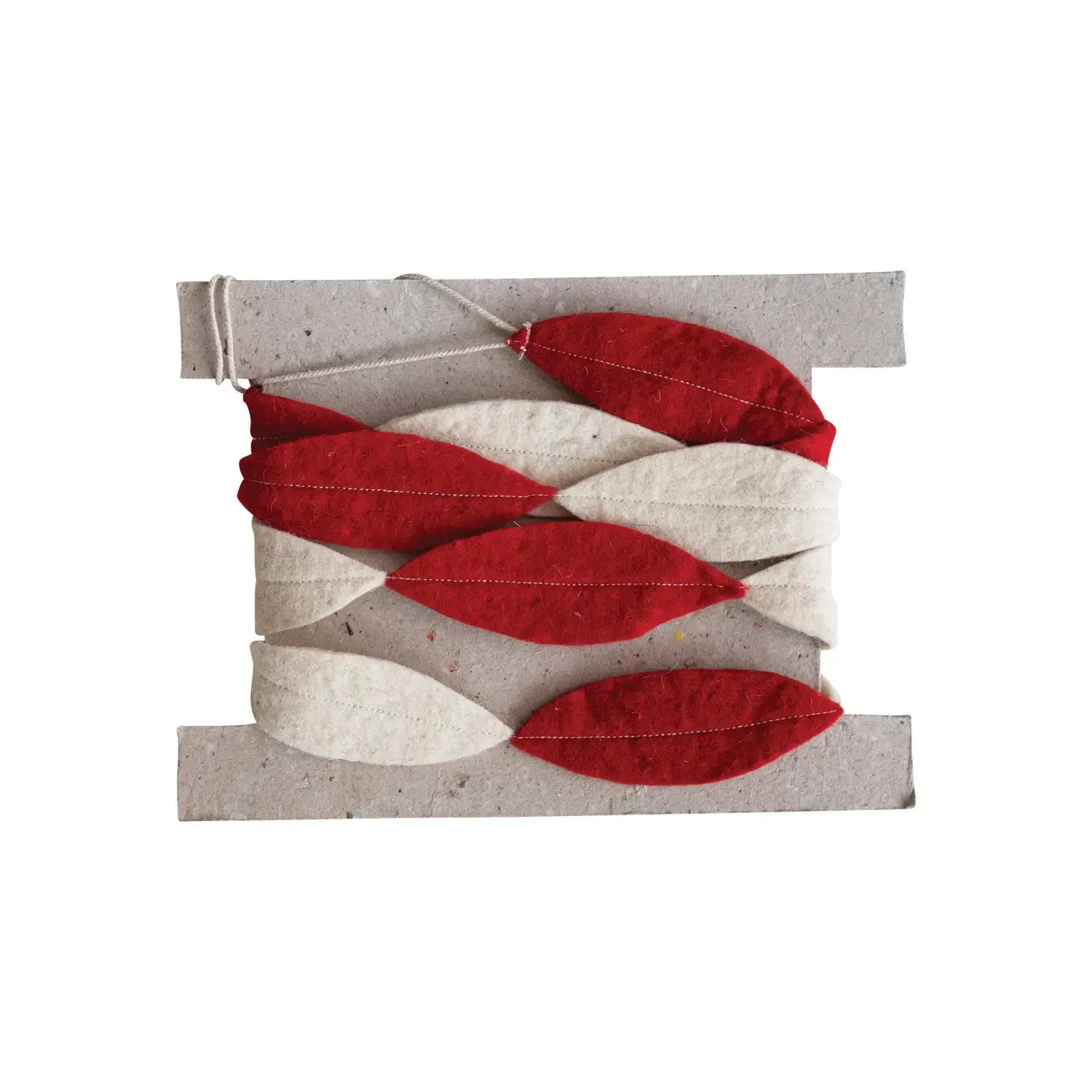 This handmade wool felt garland in red and cream hues is a blend of simplicity and warmth.