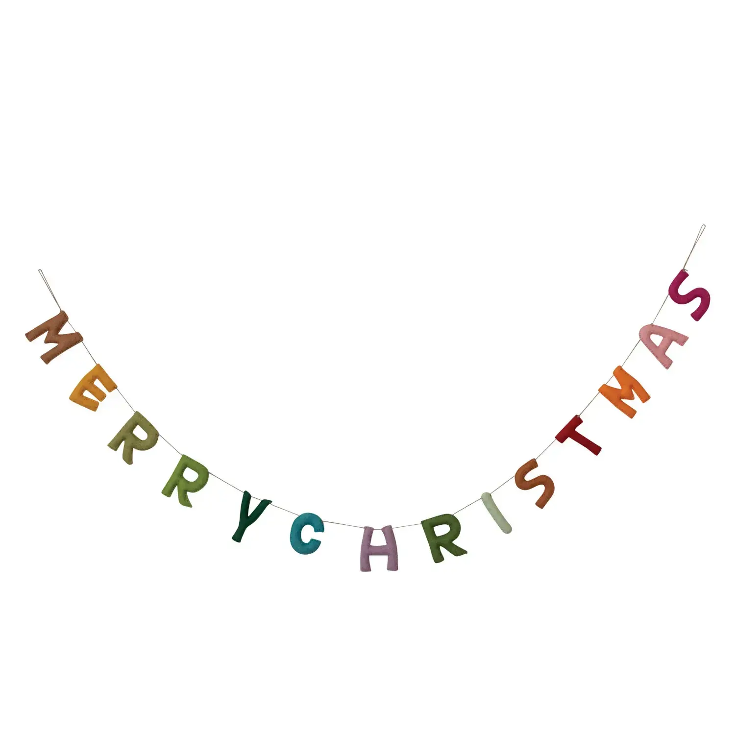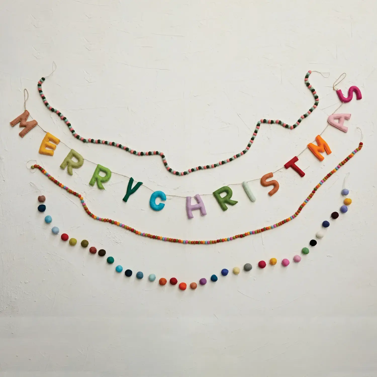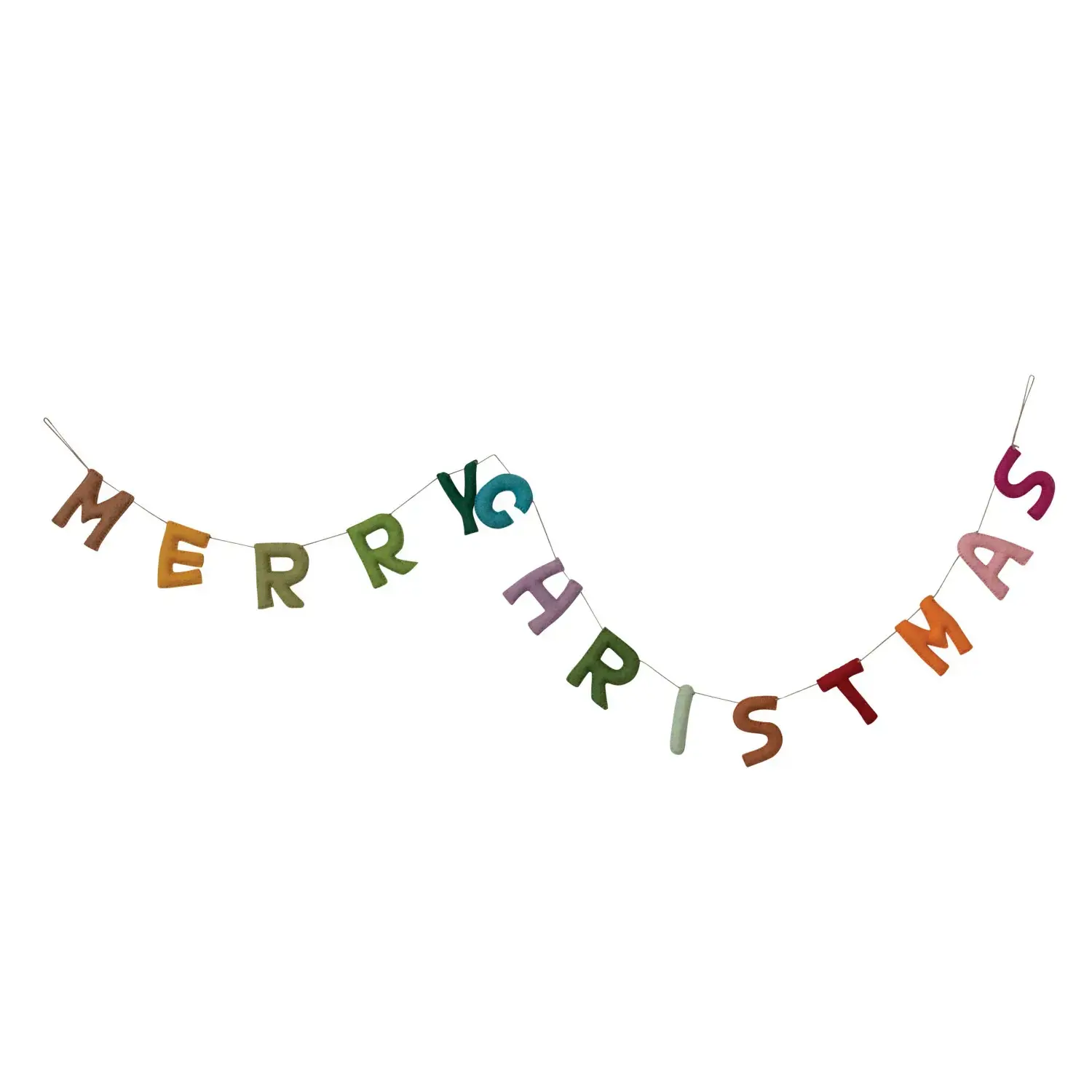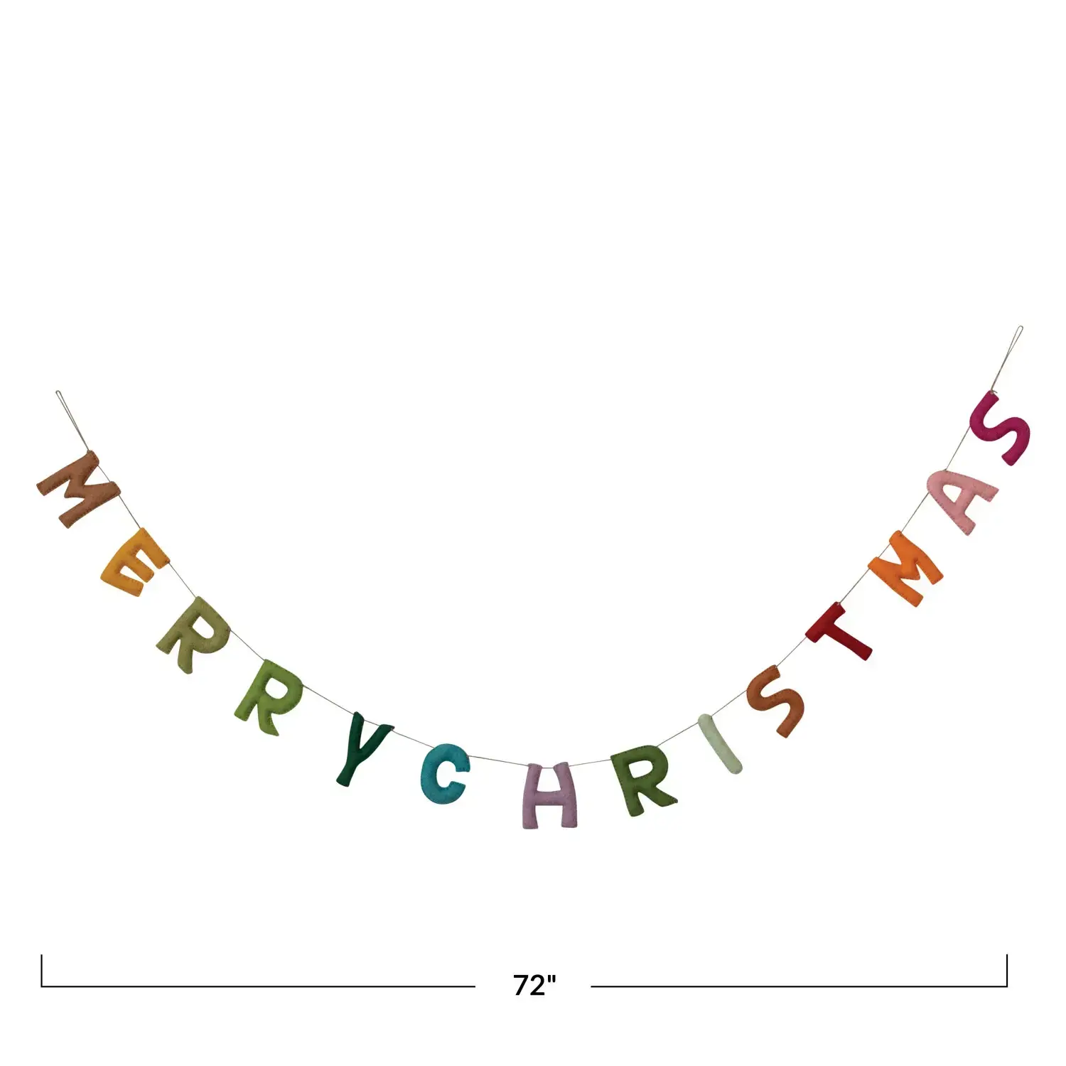 72"L Handmade Wool Felt Garland "Merry Christmas", Multi Color.