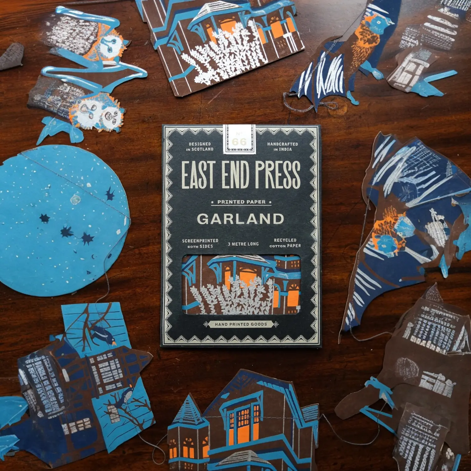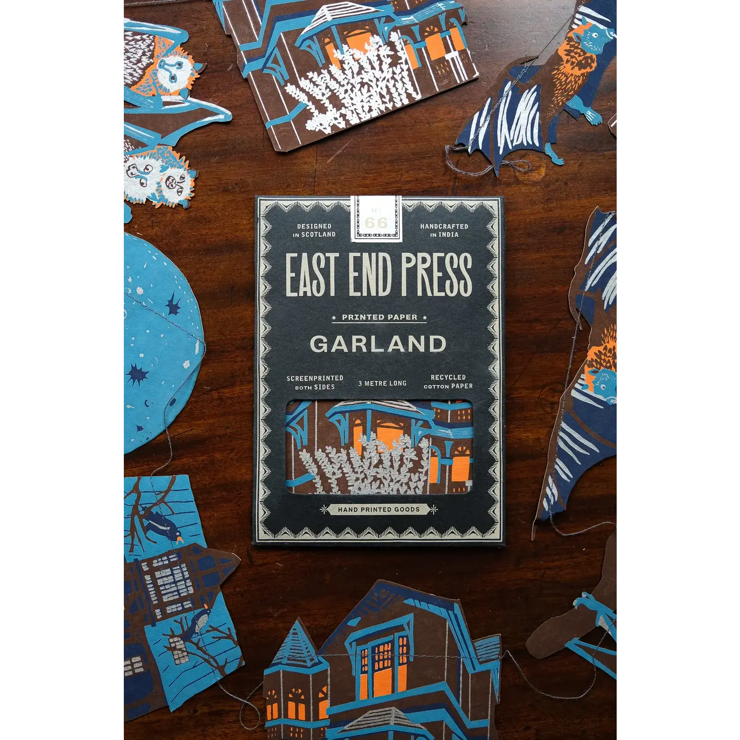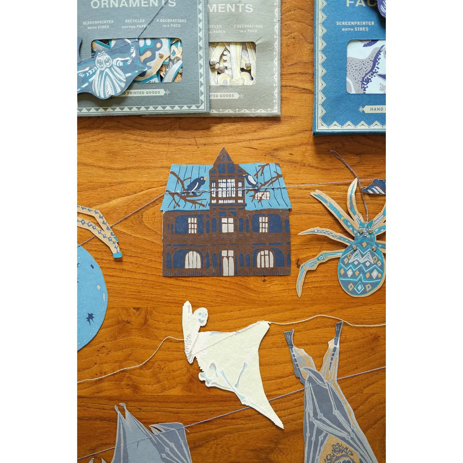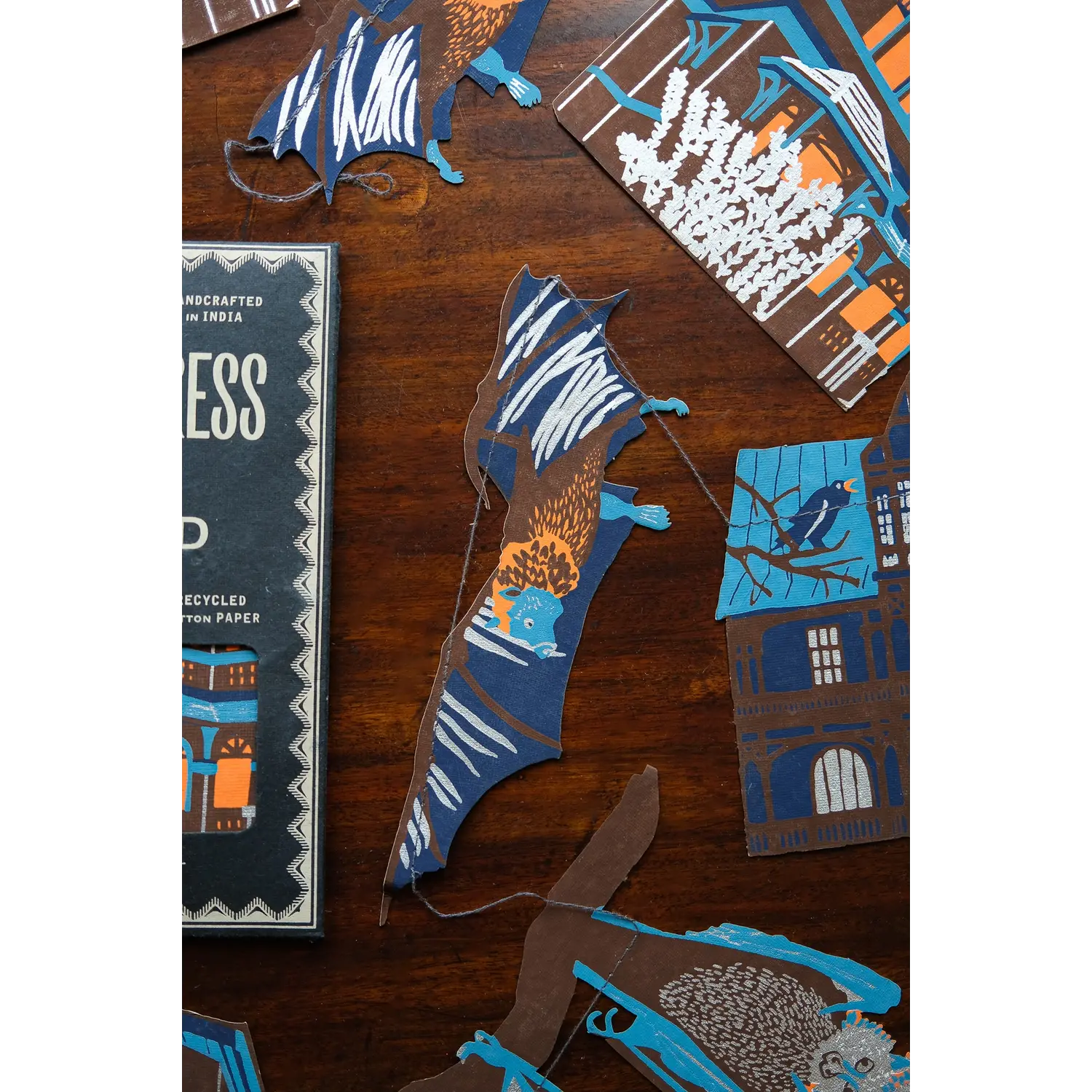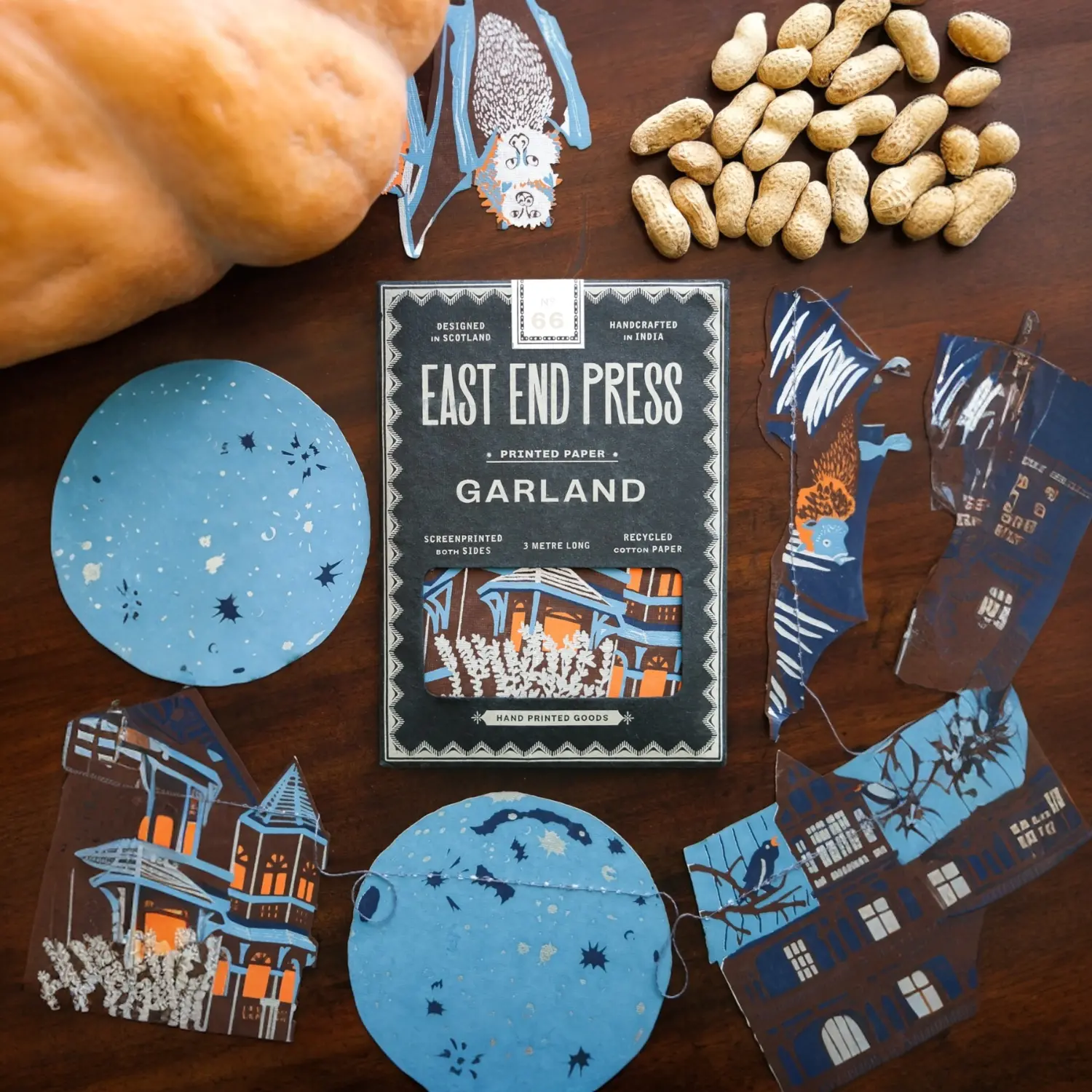 Haunted houses, moons and bats are spread along this garland, perfect for adding some spookiness and enchantment to your Halloween decor!