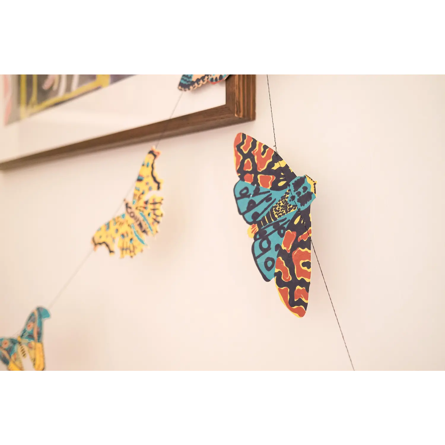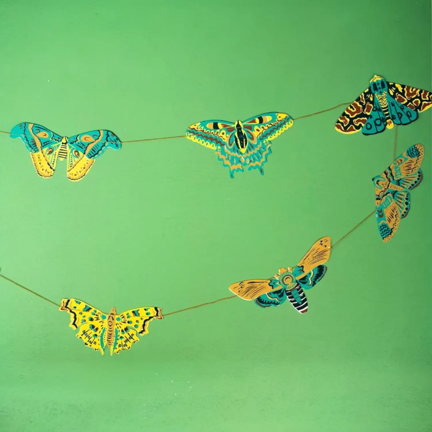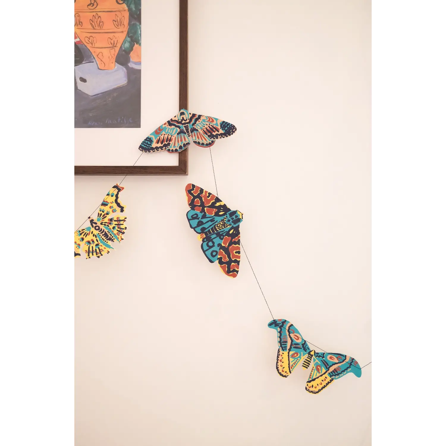 A beautiful assortment of large moths create this garland, each with patterned, colorful wings, ready to fly across your walls!