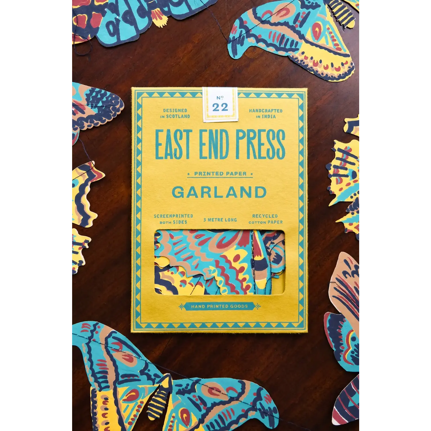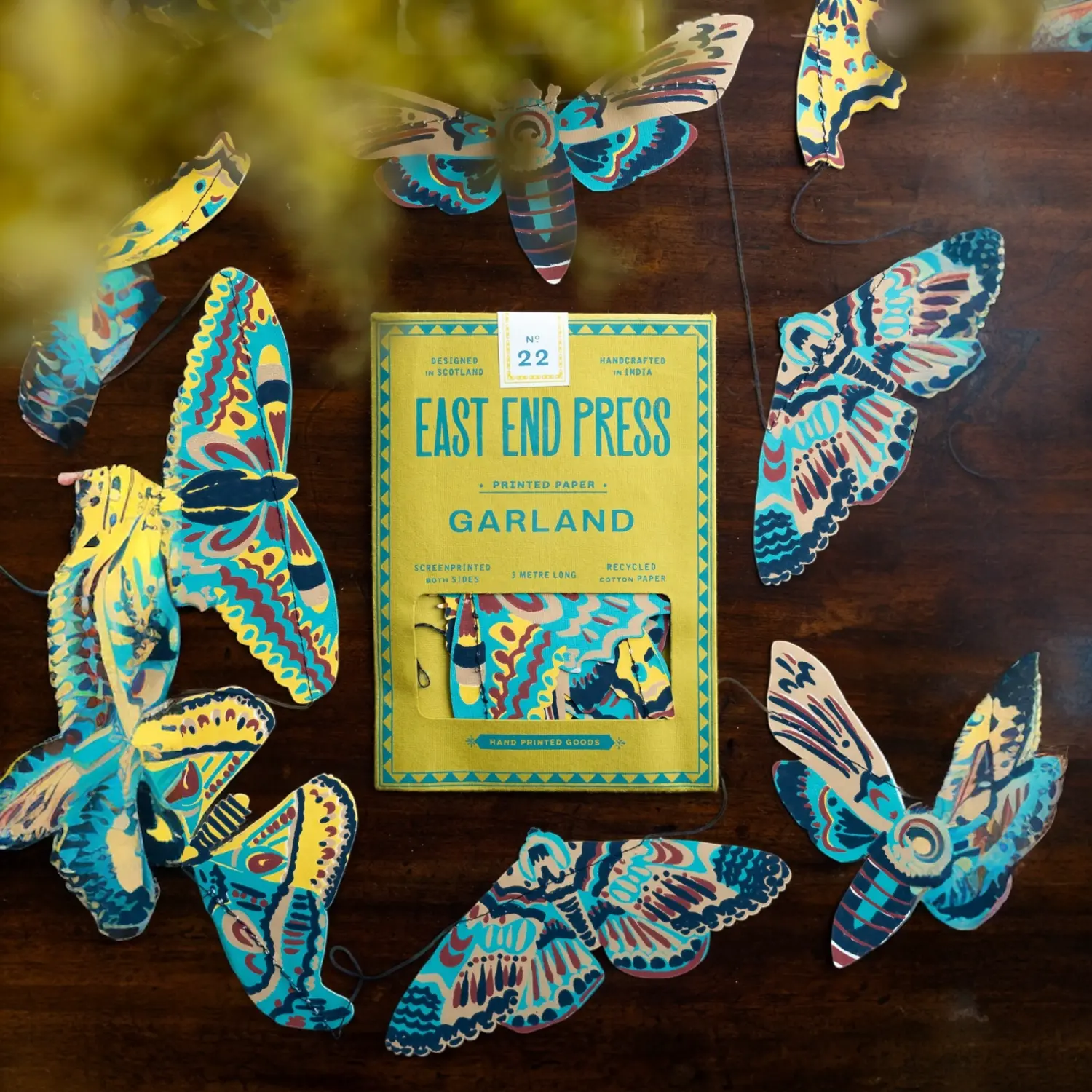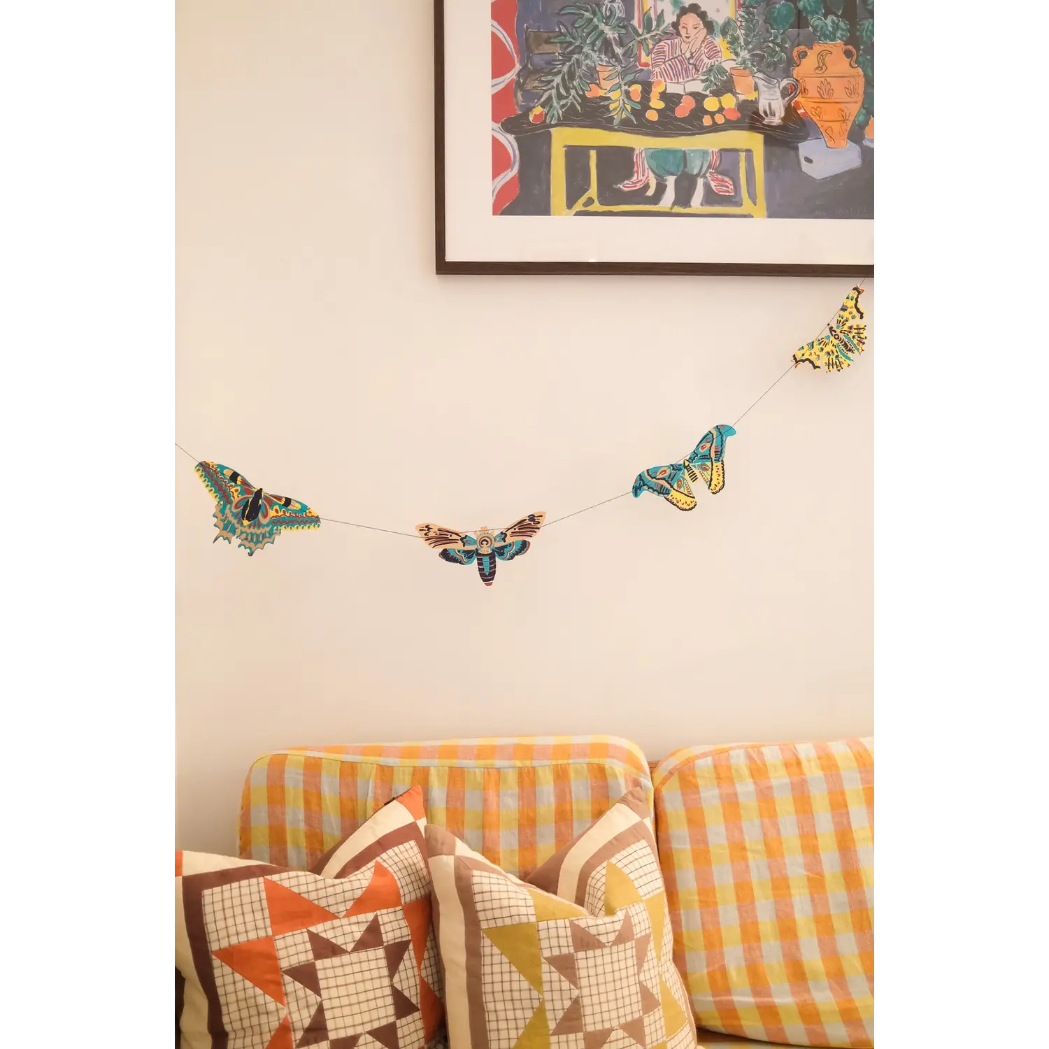 A beautiful assortment of large moths create this garland, each with patterned, colorful wings, ready to fly across your walls!