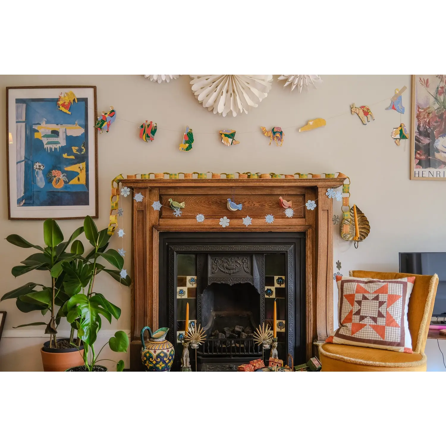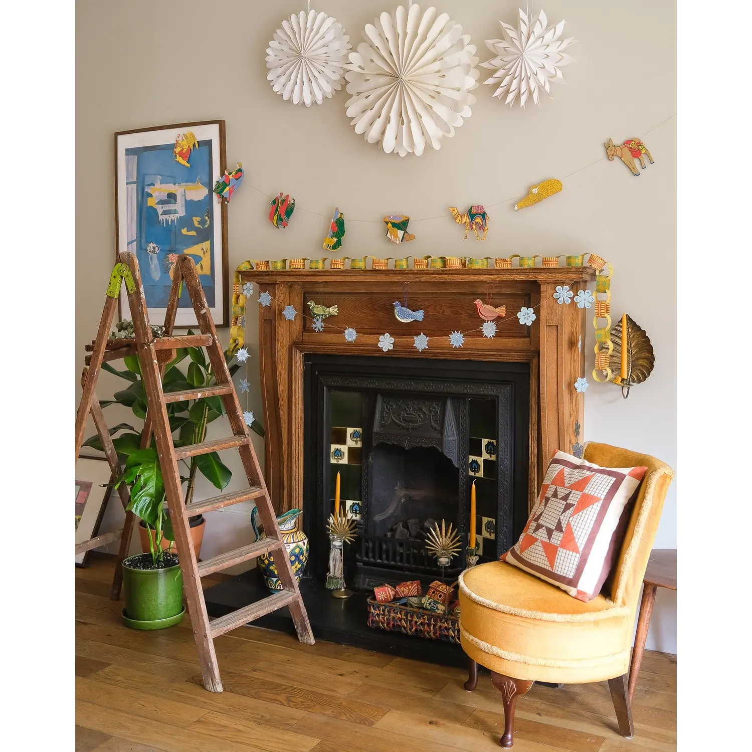 Includes 10 brightly colored paper shapes hand-sewn along 10 ft cotton thread.