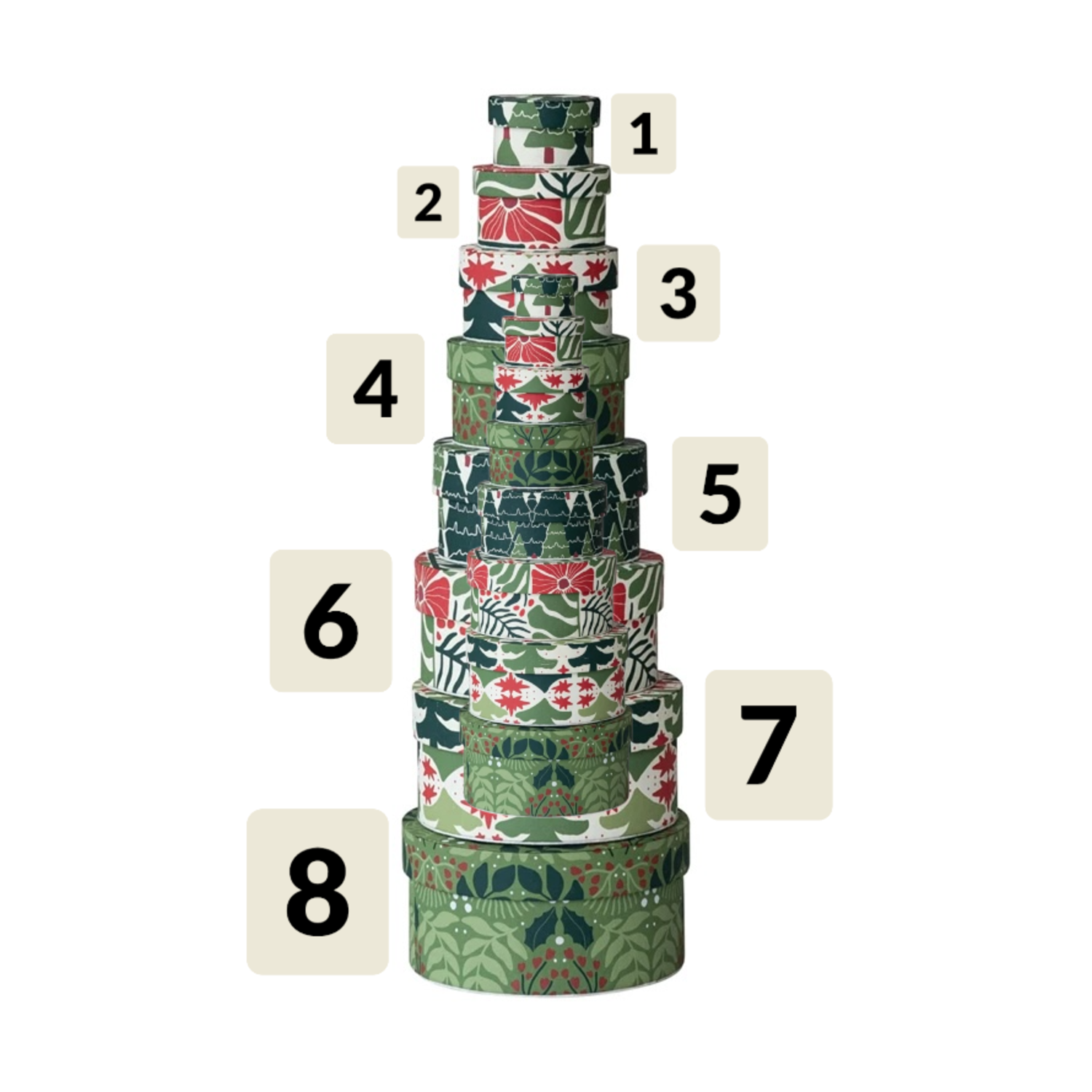 Bright, cheerful, and eco-friendly — these round nesting boxes bring charm to any gift presentation or home storage.