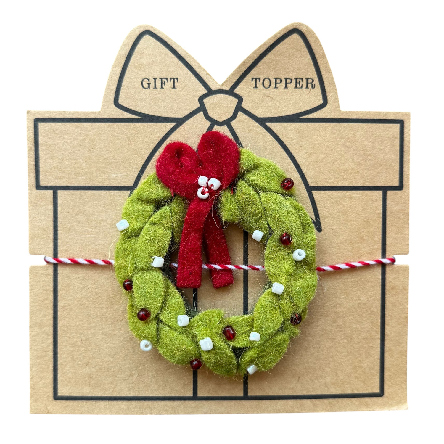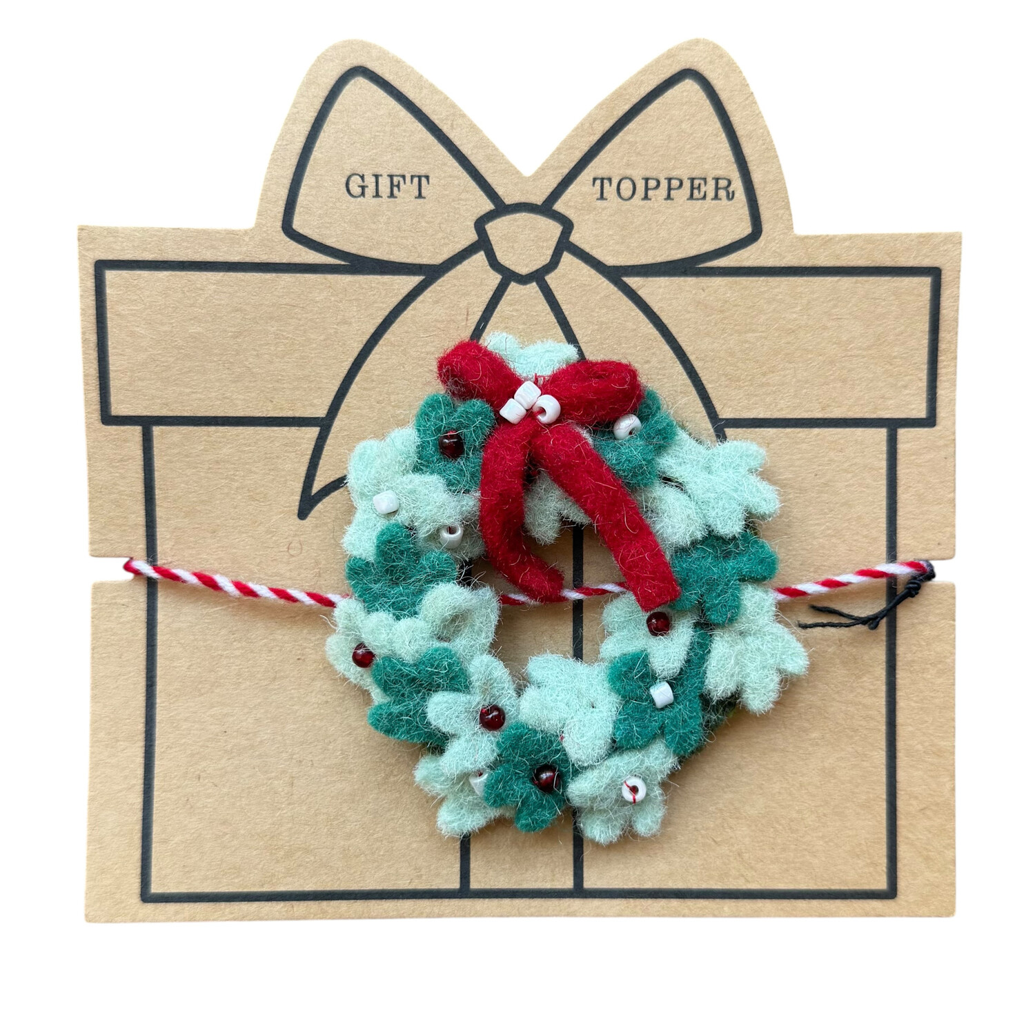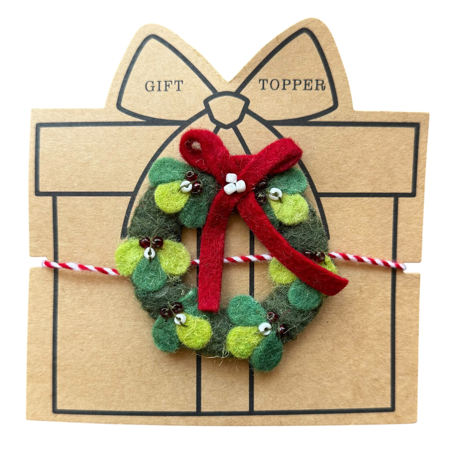 Add a touch of handmade charm to your holiday wrapping with this delightful wool felt wreath gift topper.