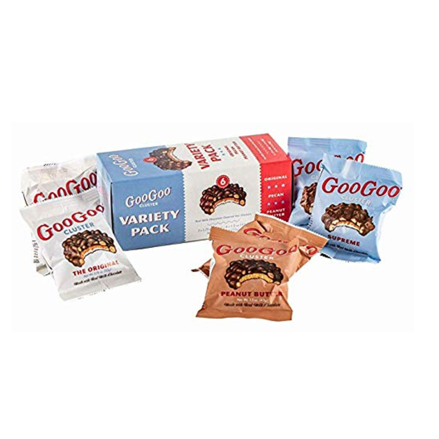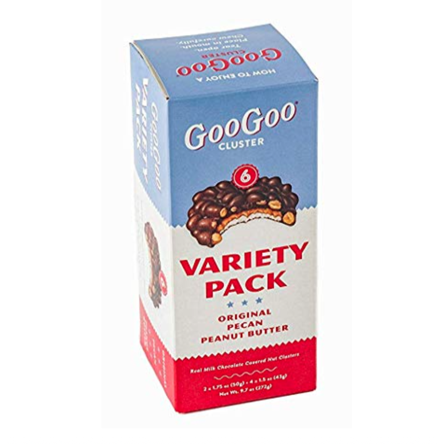 Variety Pack is the sweet assortment of all three classic Goo Goo Clusters: 2 Original, 2 Pecan, and 2 Peanut Butter (the new kid on the block).