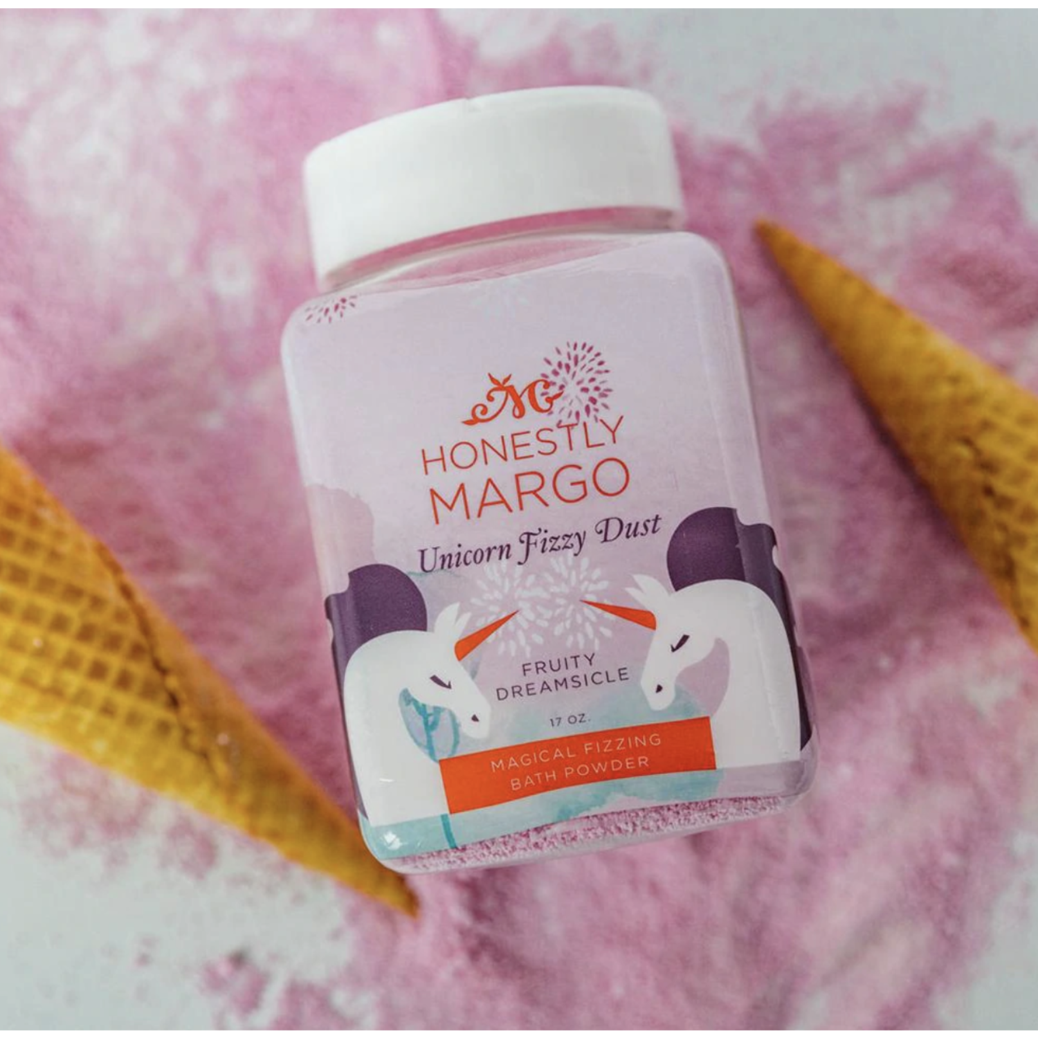 Make your bath magical with Unicorn Fizzy Dust. The Fruity Dreamsicle scent will sweep you away to your unicorn dreams!