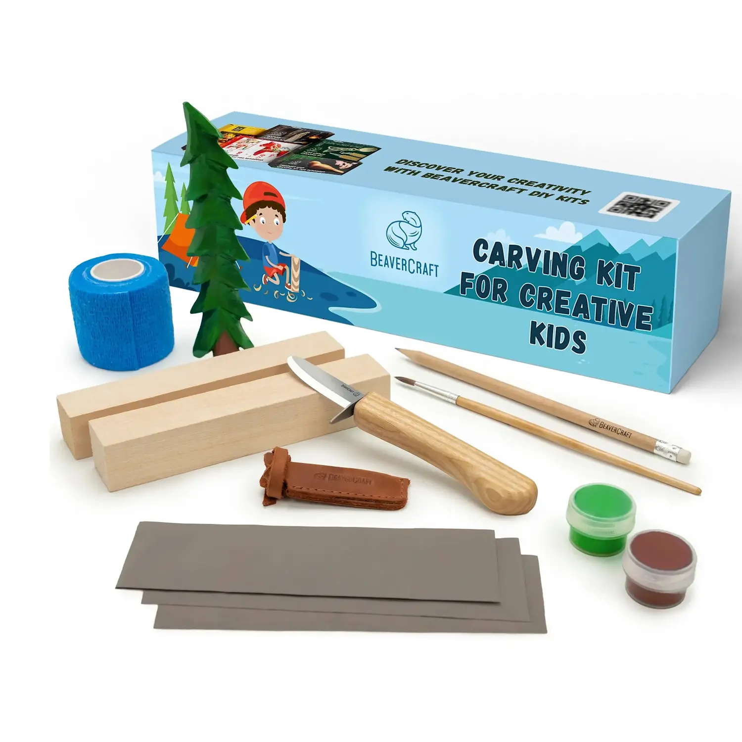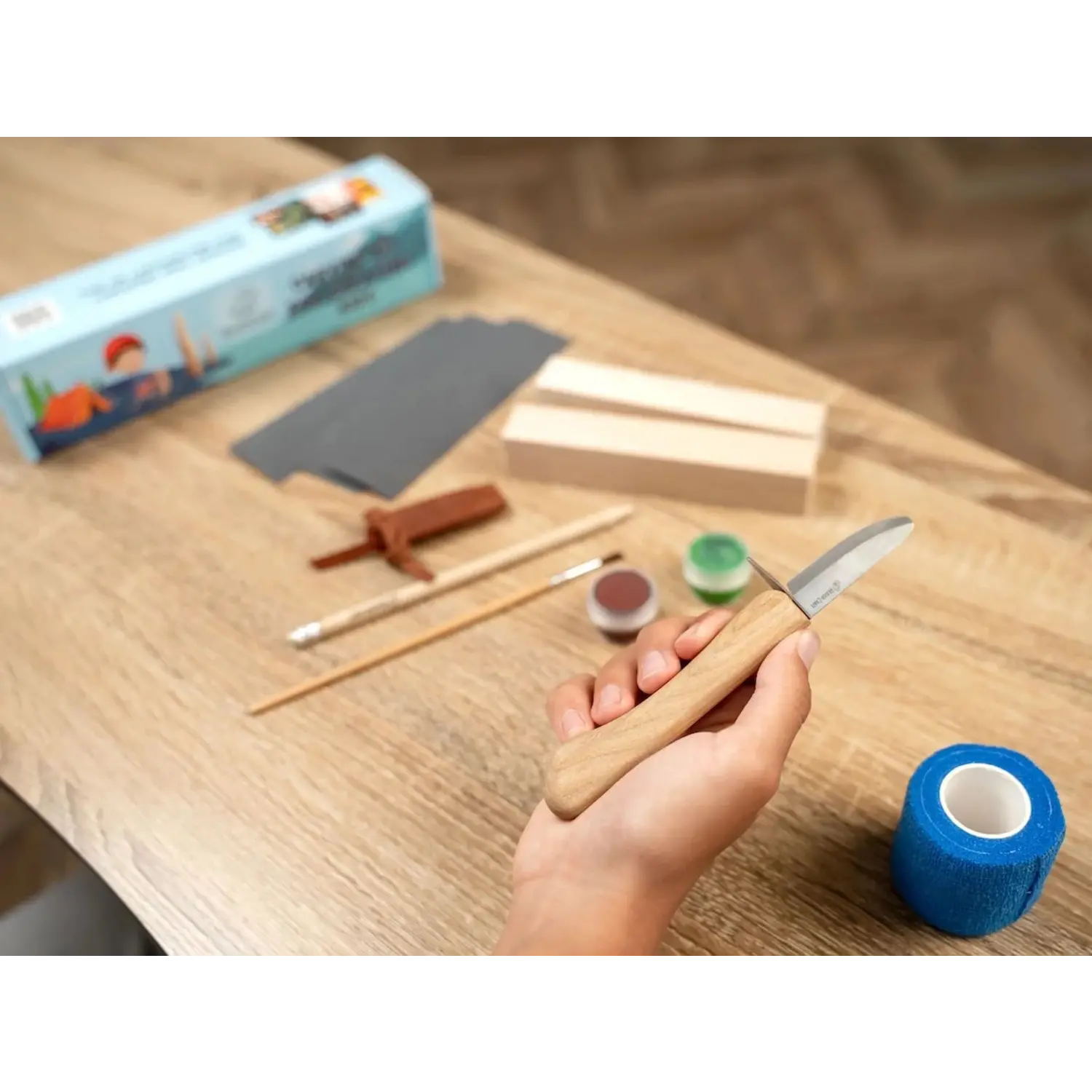 Designed to be safe and fun, the kit features a specially crafted whittling knife with a rounded tip and protective guard – a top choice for wood carving for kids.