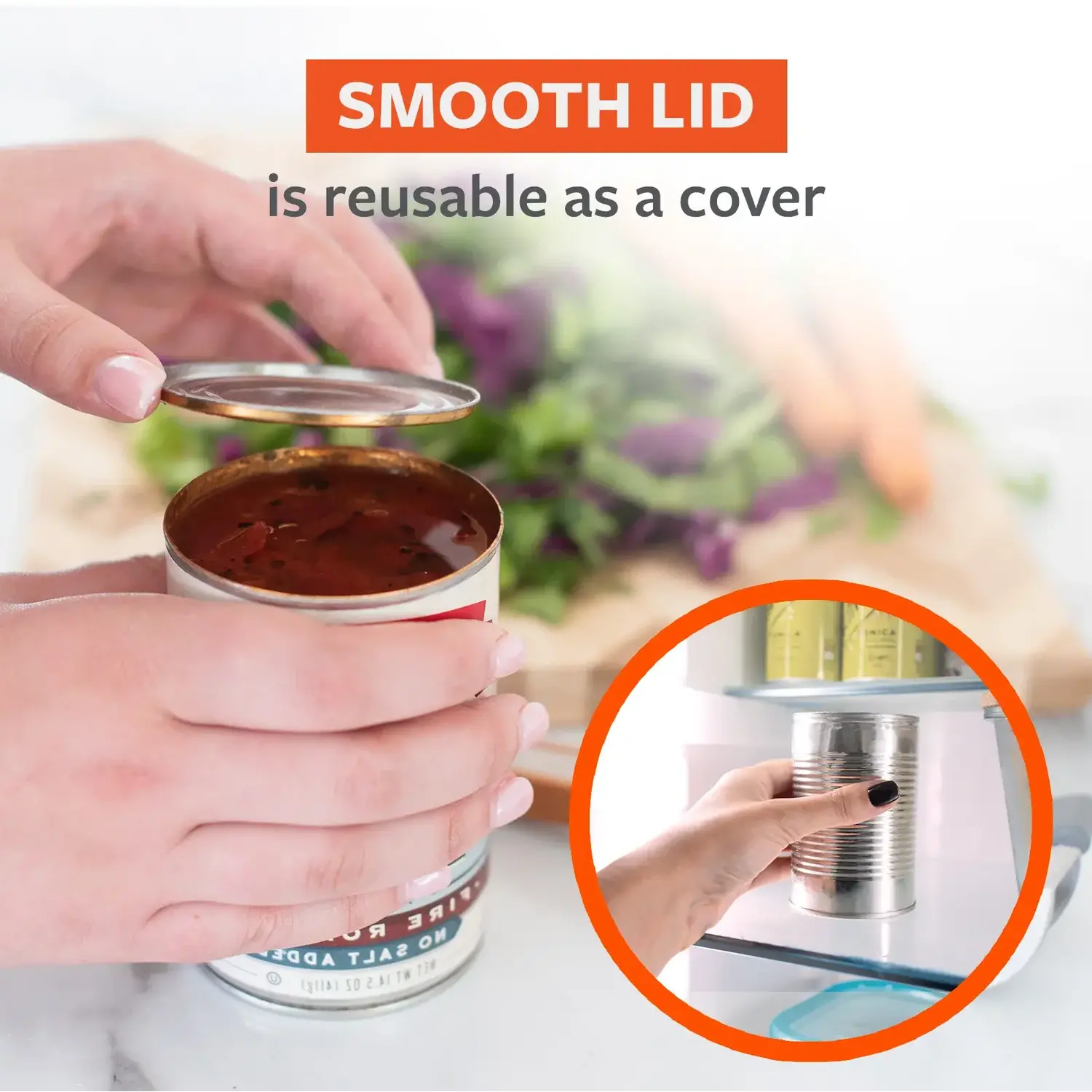 • Safe-Cut Reusable Lid