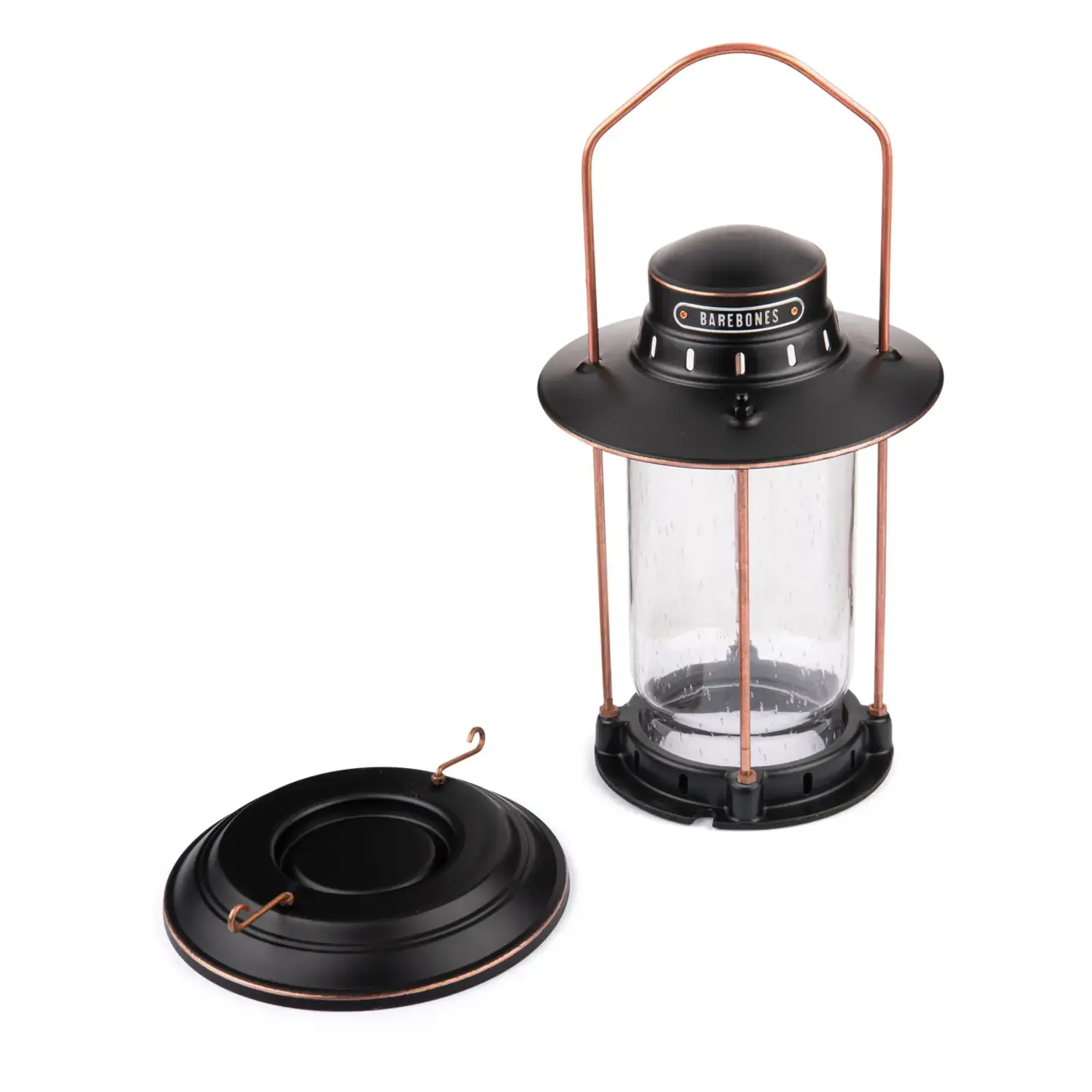 Use the curved copper handle to hang the lantern on your porch, or set it anywhere as an accent light for your gathering.