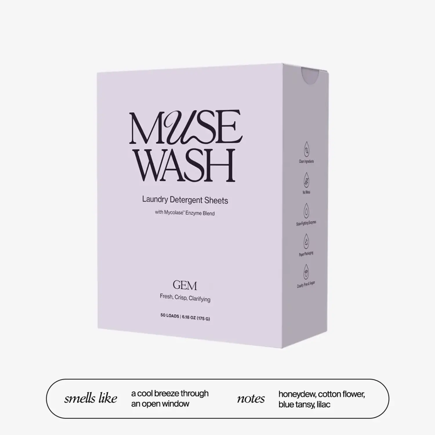 MUSEWASH detergent sheets deliver an inspired clean with powerful, skin-safe ingredients and signature scents.