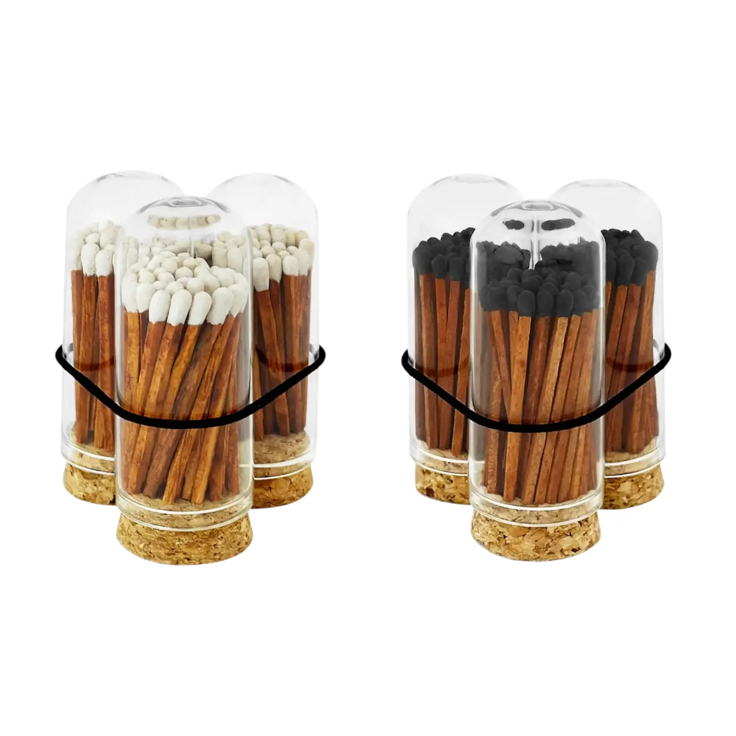 A premium collection of Mini Glass Cloche + Color Tipped Safety Matches, where functionality meets delightful design.