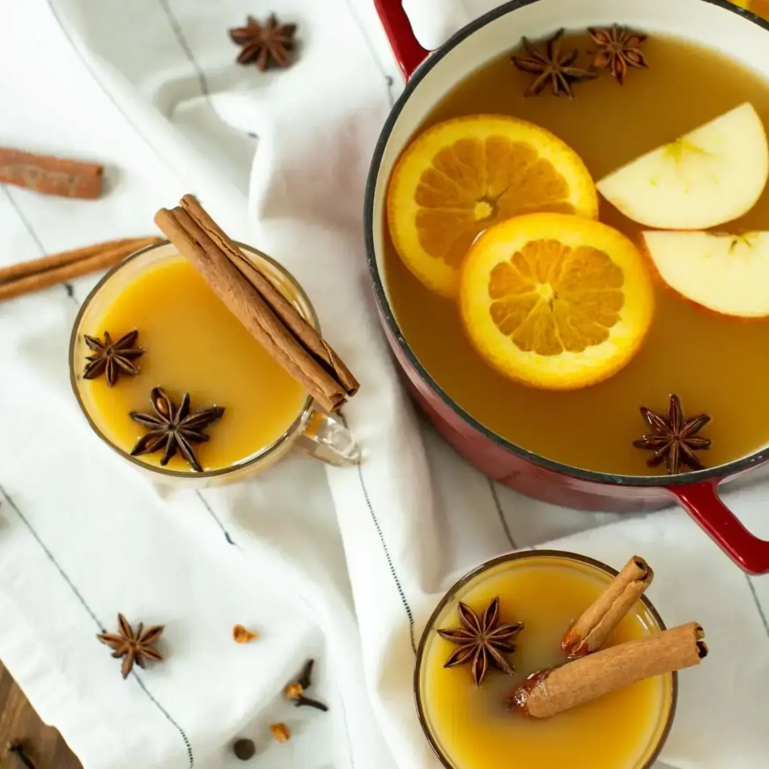 Whole spices– cinnamon sticks, allspice, cloves, anise stars– come together with lemon and orange rind to make a perfect blend.