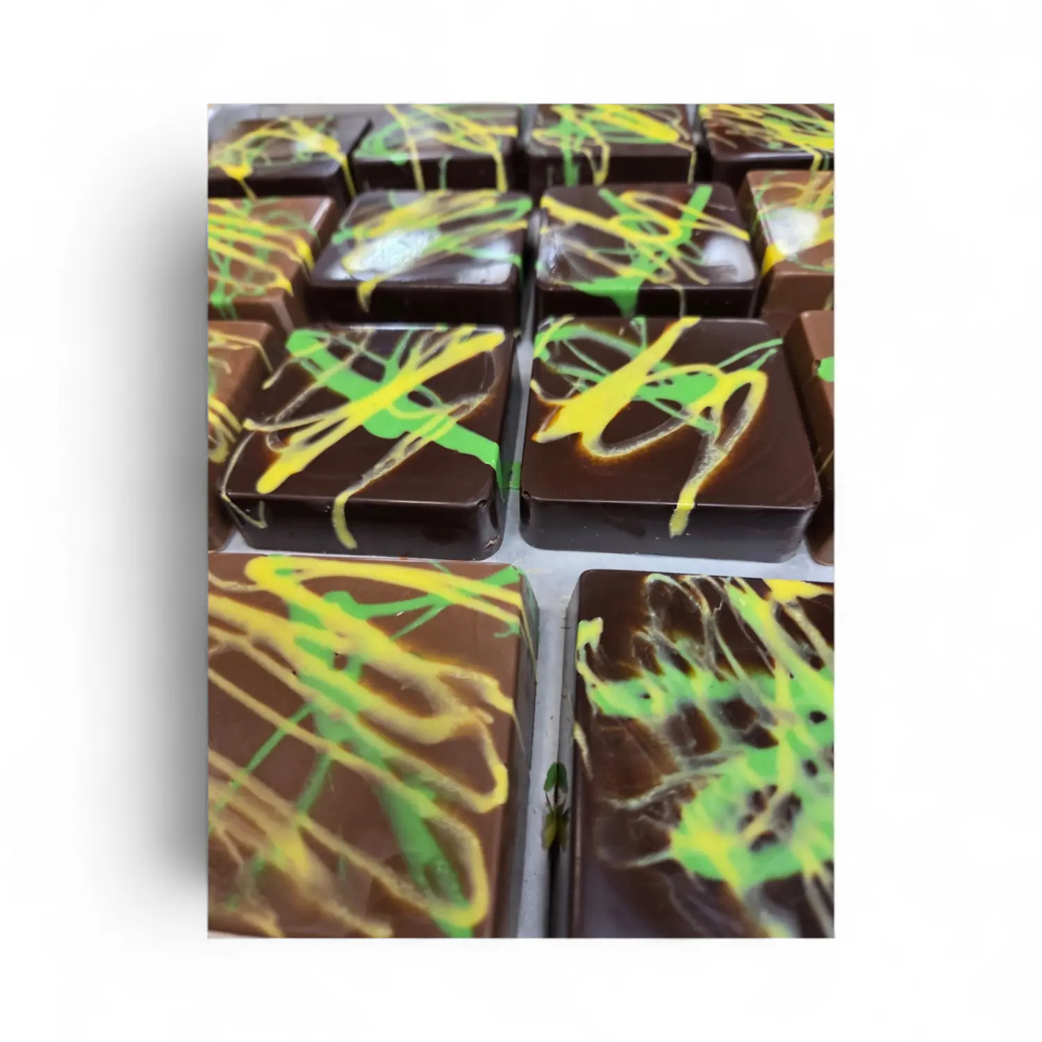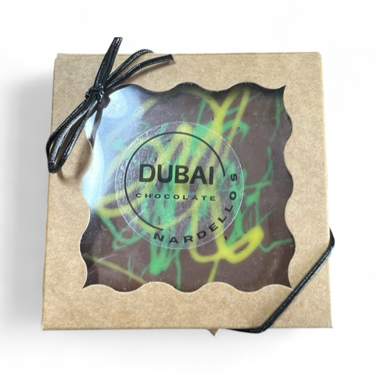Dubai Bars are made with Nardello’s house made creamy Pistachio Butter mixed with toasted Kataifi-style shredded Phyllo and Tahini, a Middle Eastern condiment made from ground sesame seeds, surrounded in smooth milk or decadent dark chocolate.