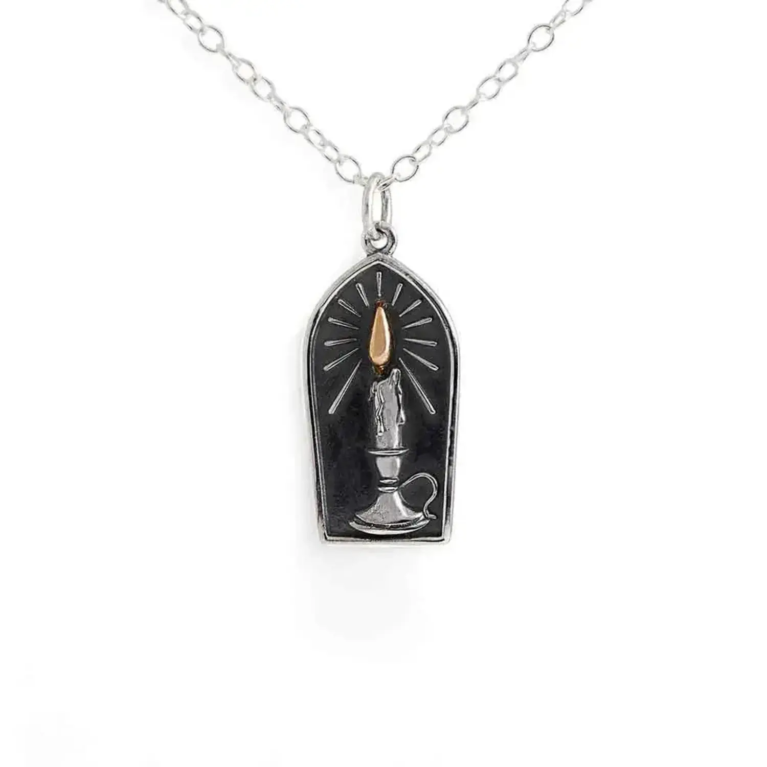 Illuminate your jewelry collection with this exquisite Sterling Silver Candle necklace adorned with a radiant Bronze Flame.