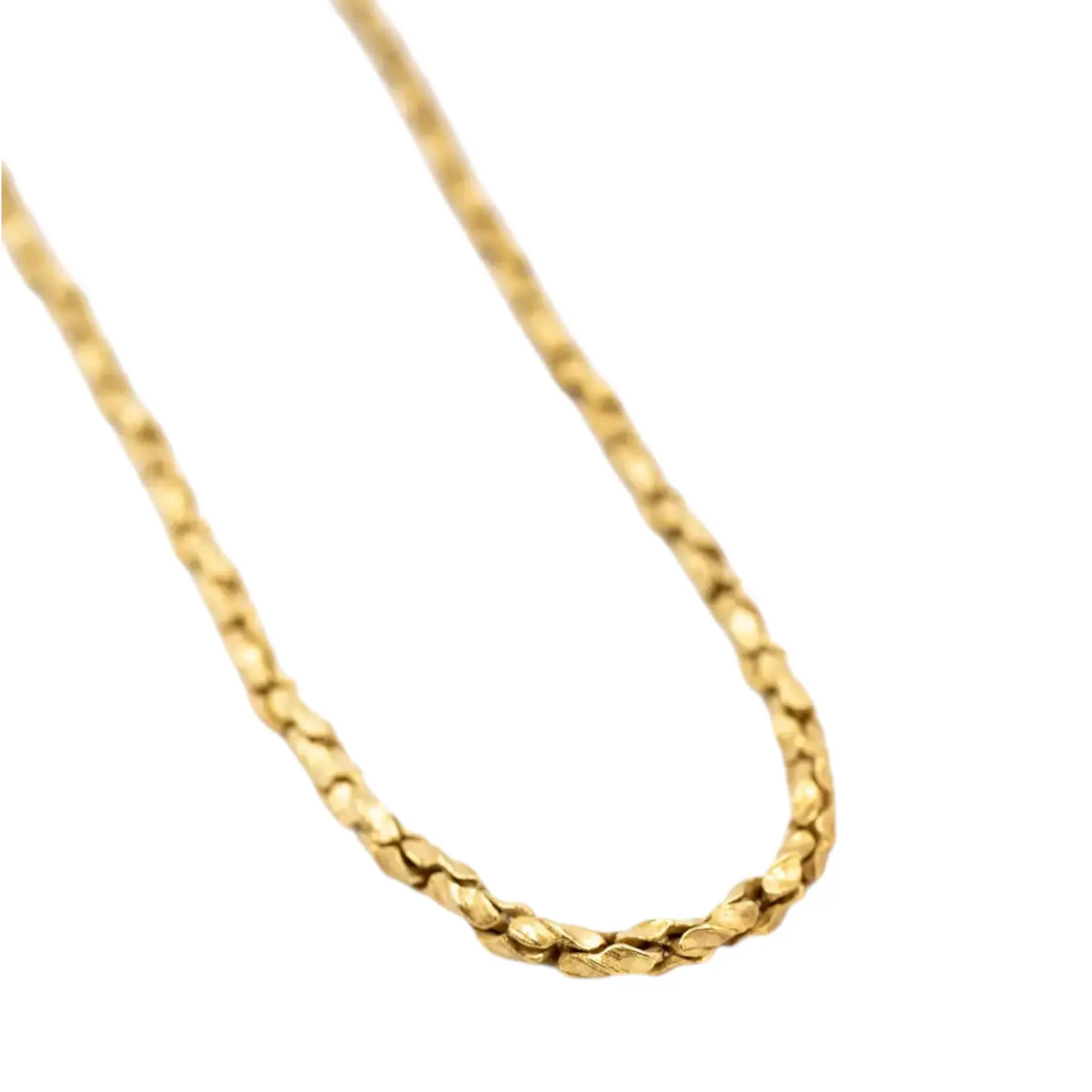 Unique textured C link brass chain with a special anti-tarnish finish to elongate the life of the chain and lessen any care/polishing.