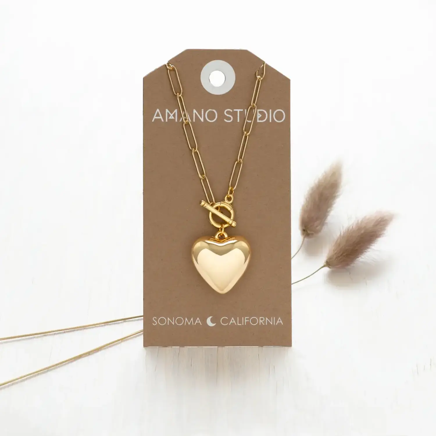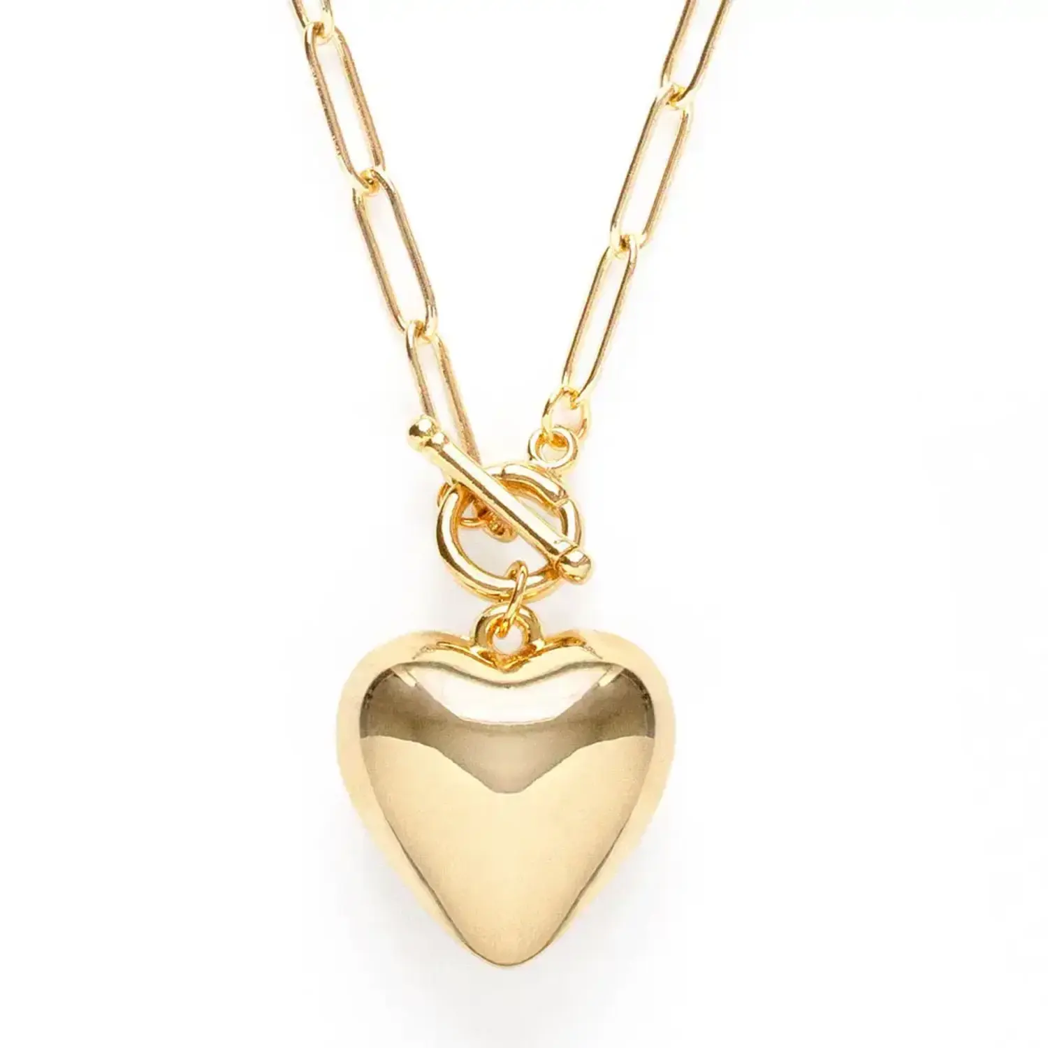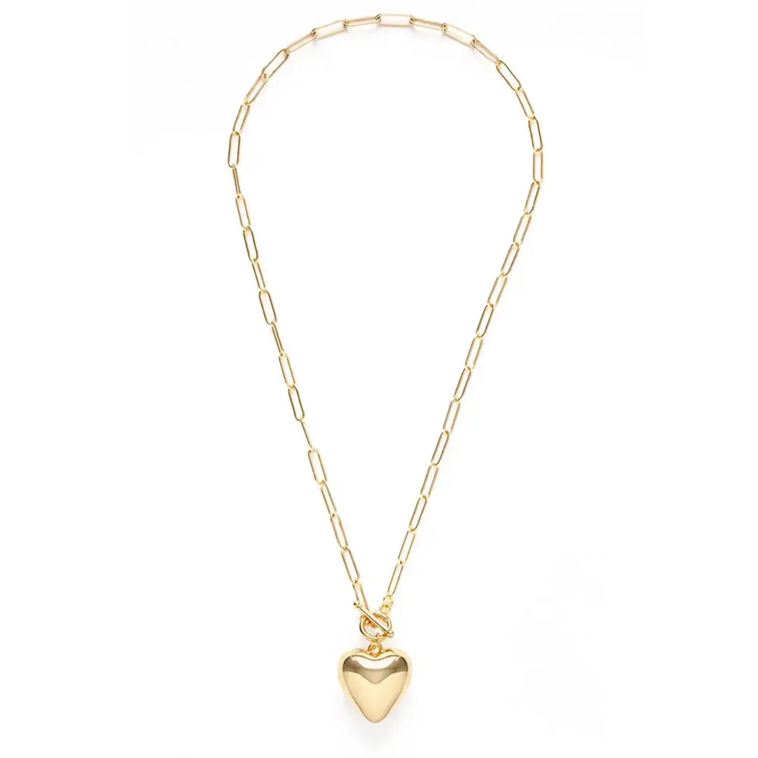 Necklace | Puffed Heart | 20" Toggle Chain | 14KGP