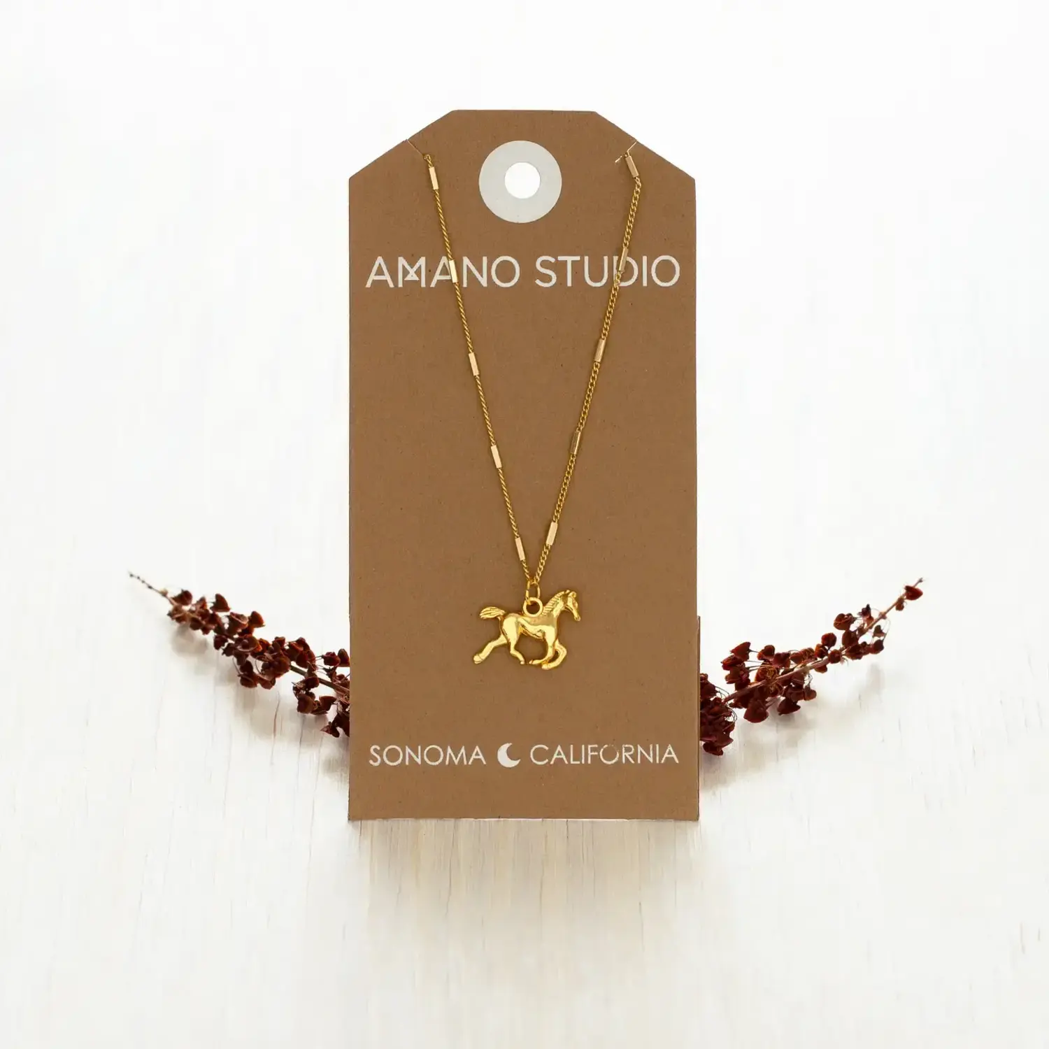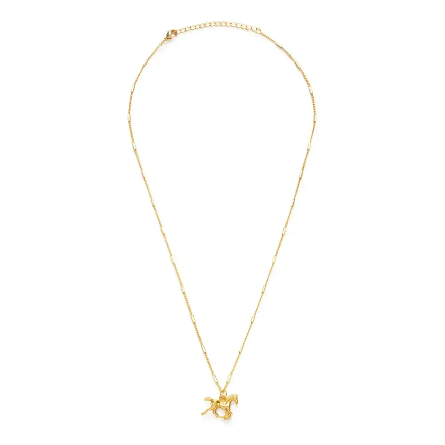 The horse hangs from a vintage-style 18" chain with 2" extender.
