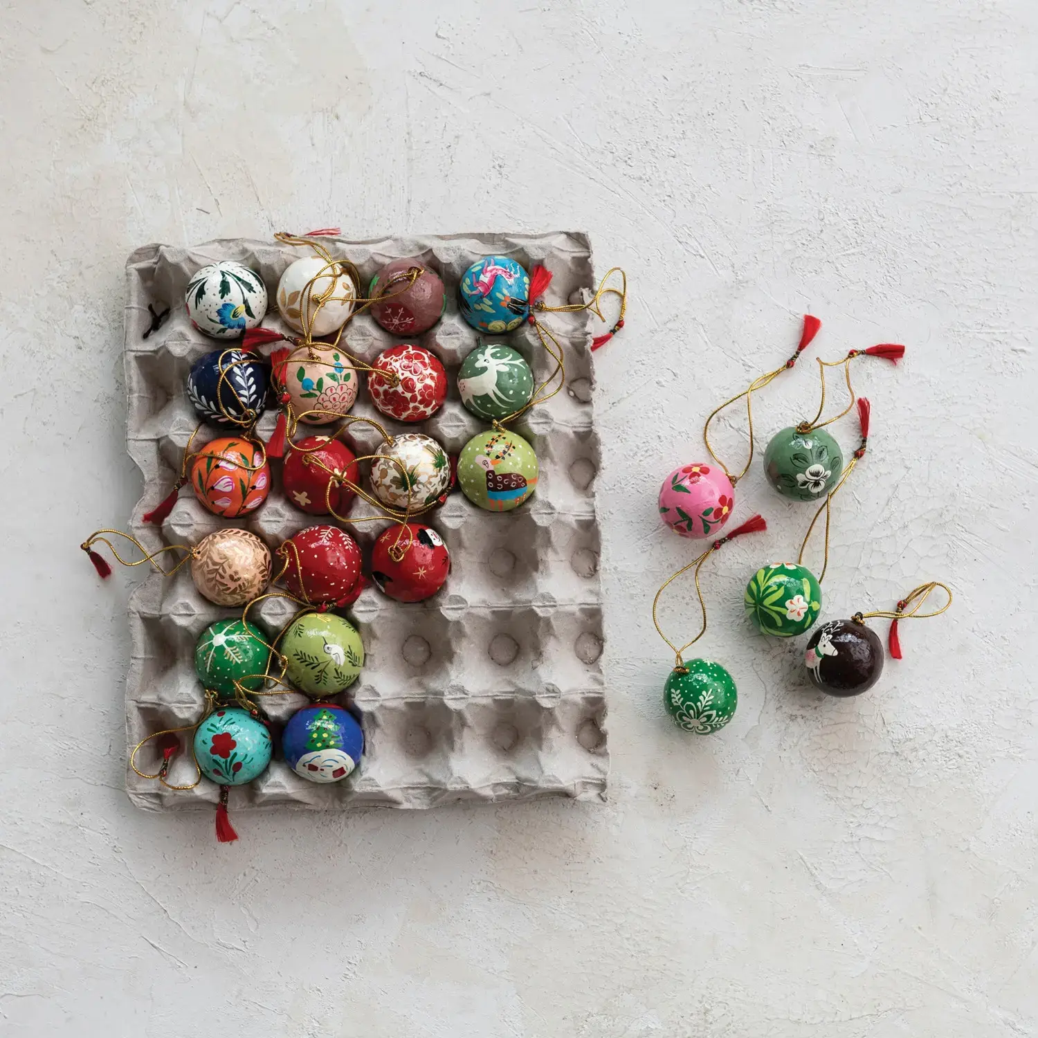 Ornament | 1" Paper Mache Ball | Hand-Painted Multicolor Assorted