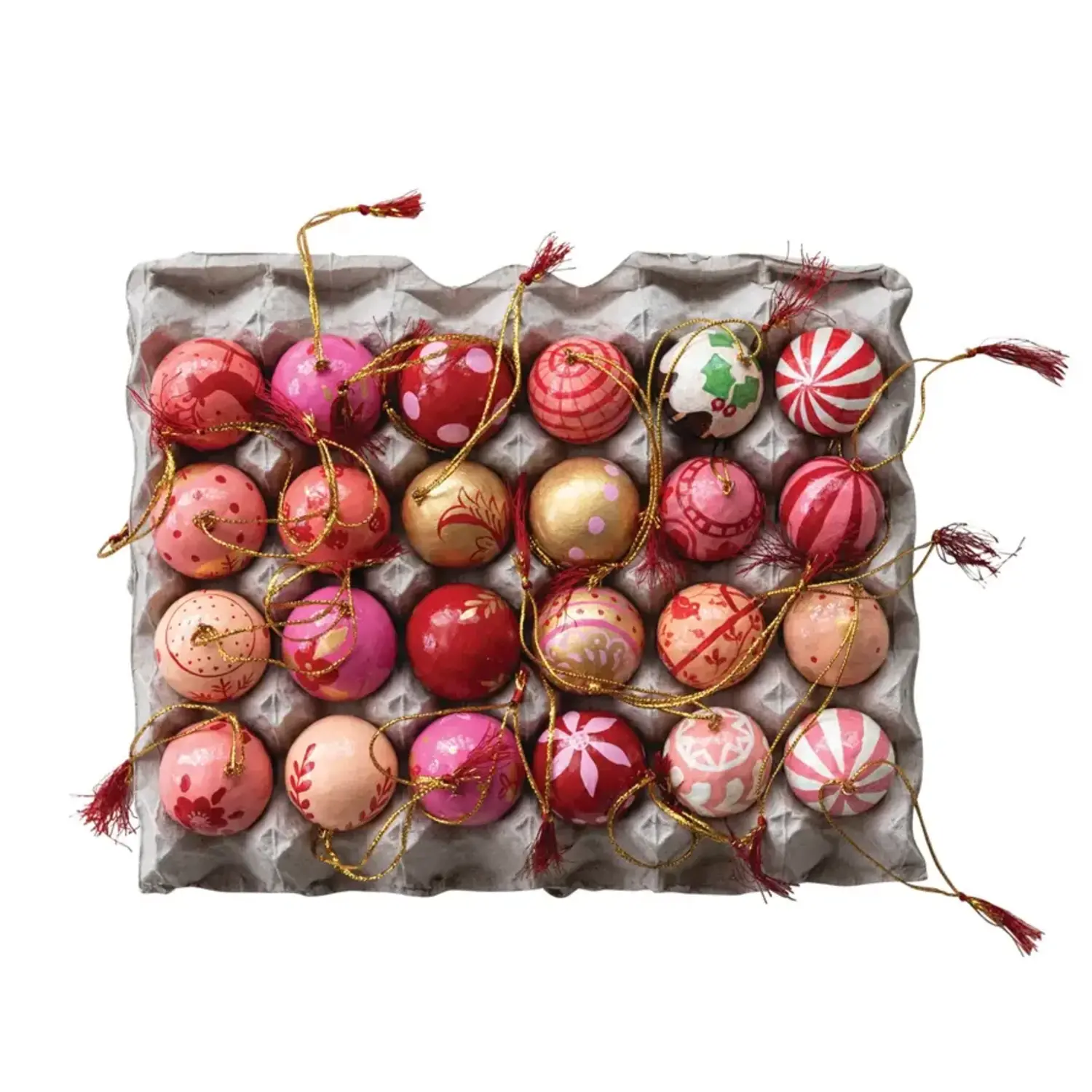 Add a touch of handcrafted charm to your holiday décor with these petite 1” paper mâché ornaments.