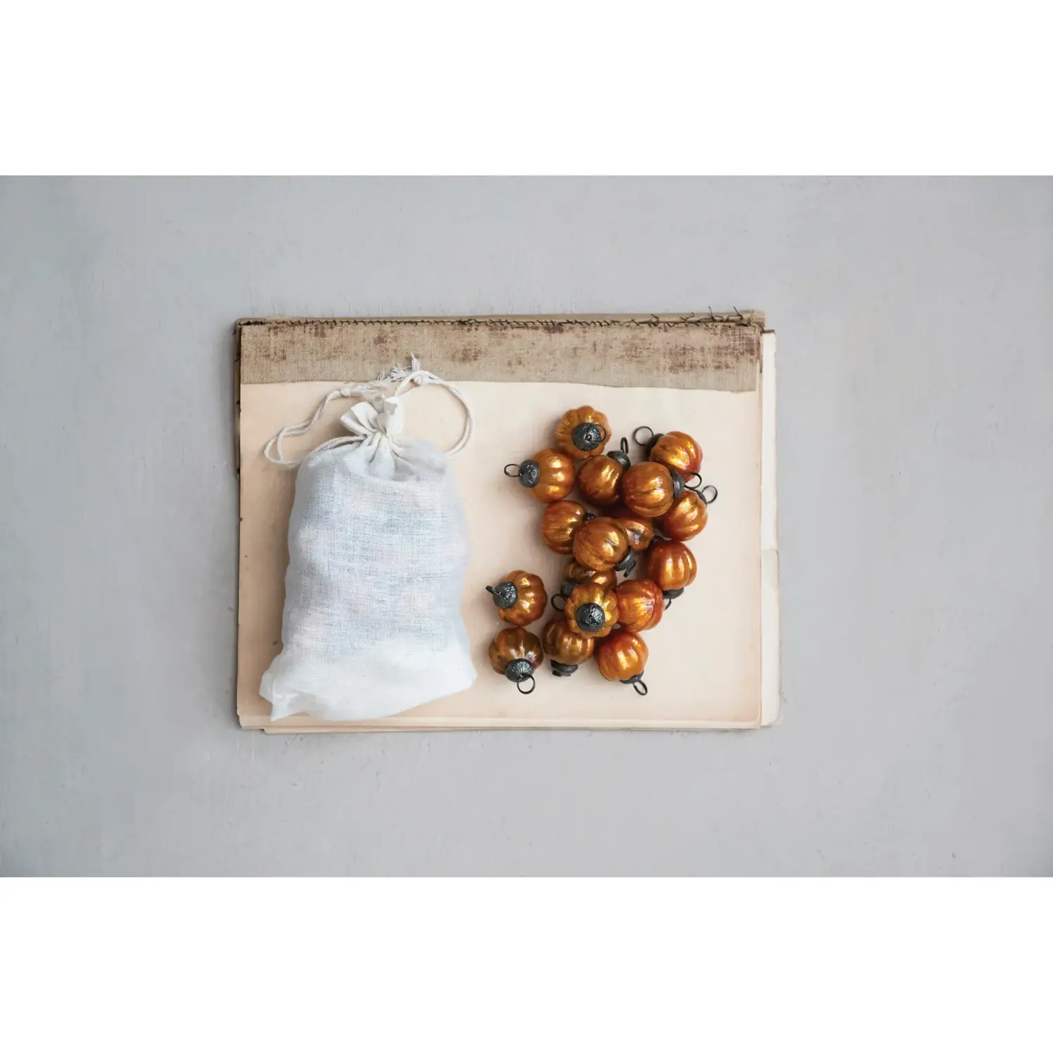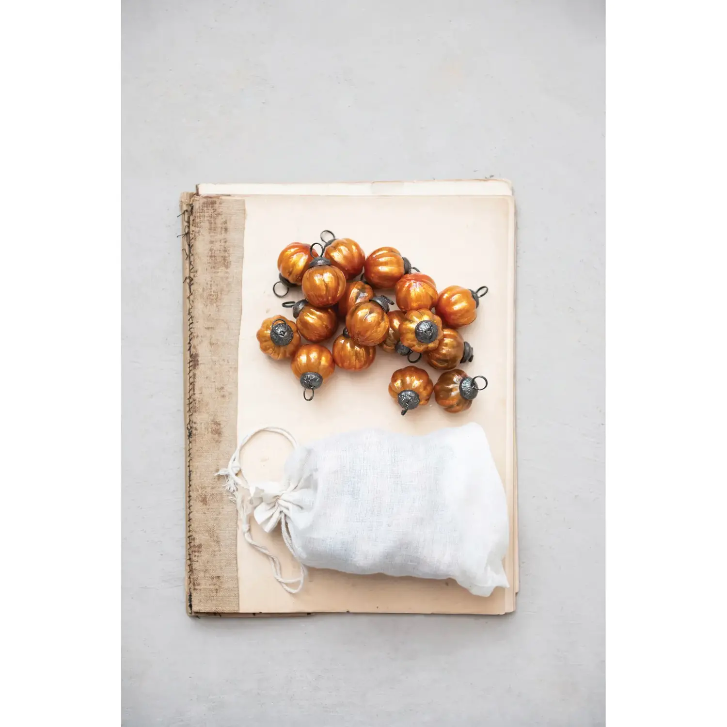 These embossed mercury glass ornaments exude the warmth and energy of a crisp autumn day with their pumpkin shape and rich orange color.