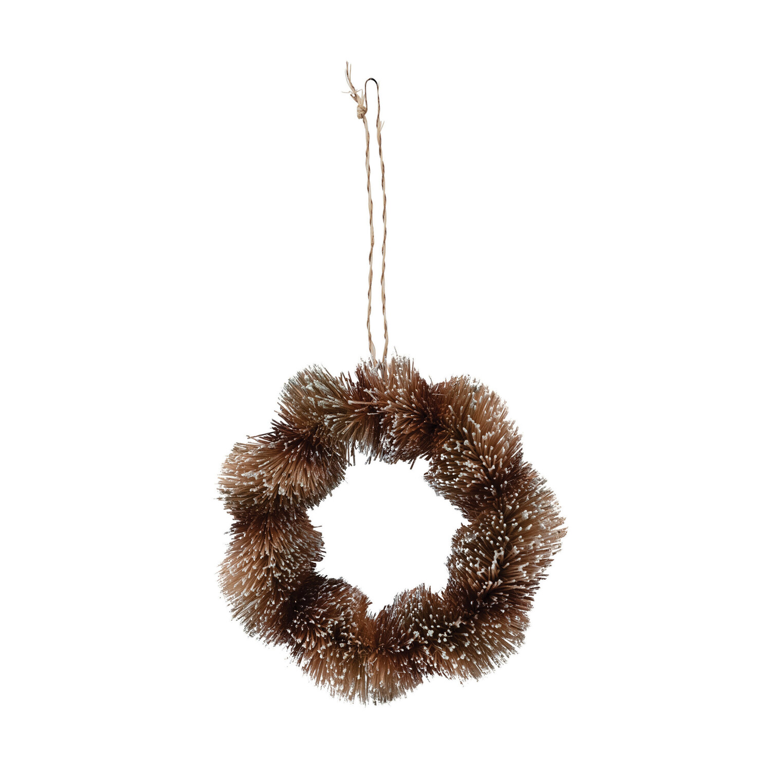 5" Round Sisal Bottle Brush Wreath Ornament, Snow Finish, Brown Ombré.