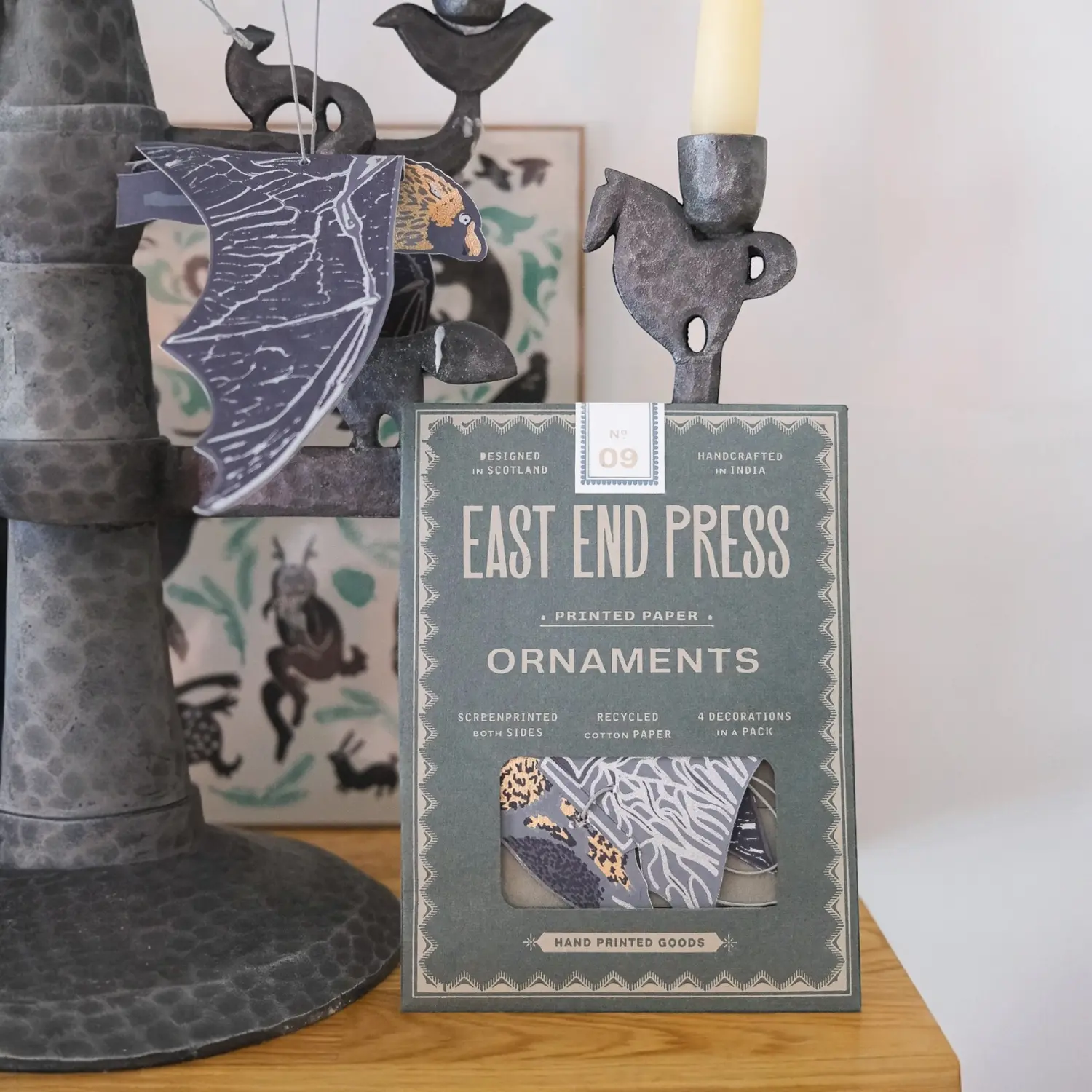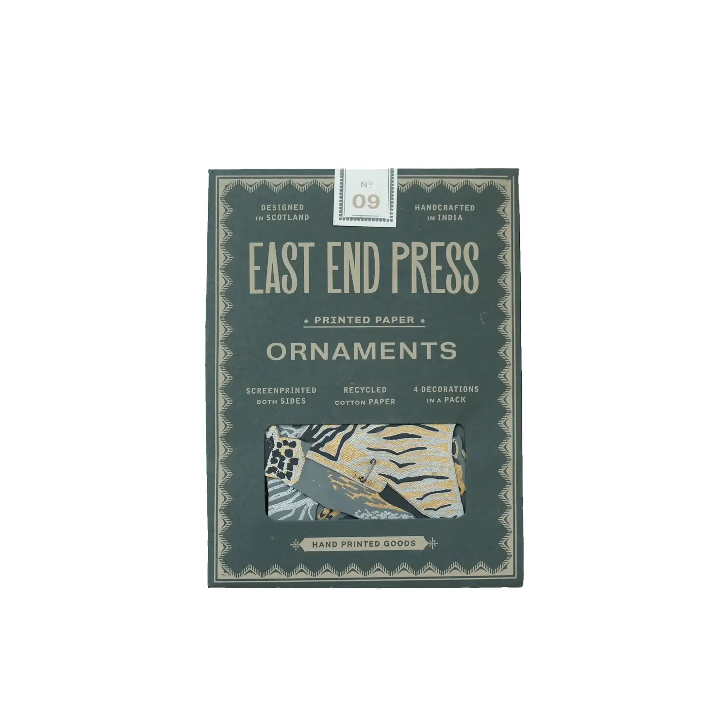 Each ornament features a different design with a sturdy, 4-inch waxed cotton hanging loop.