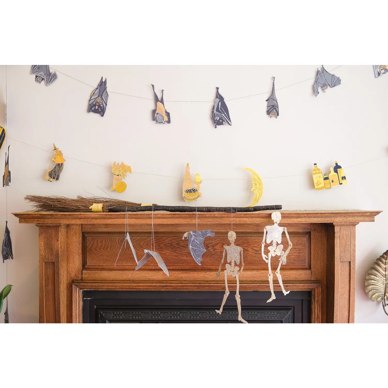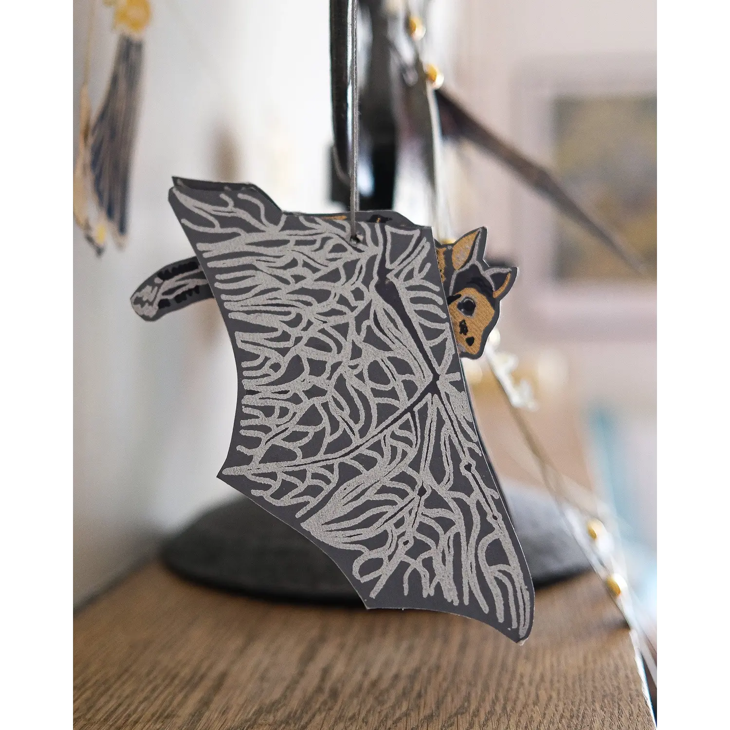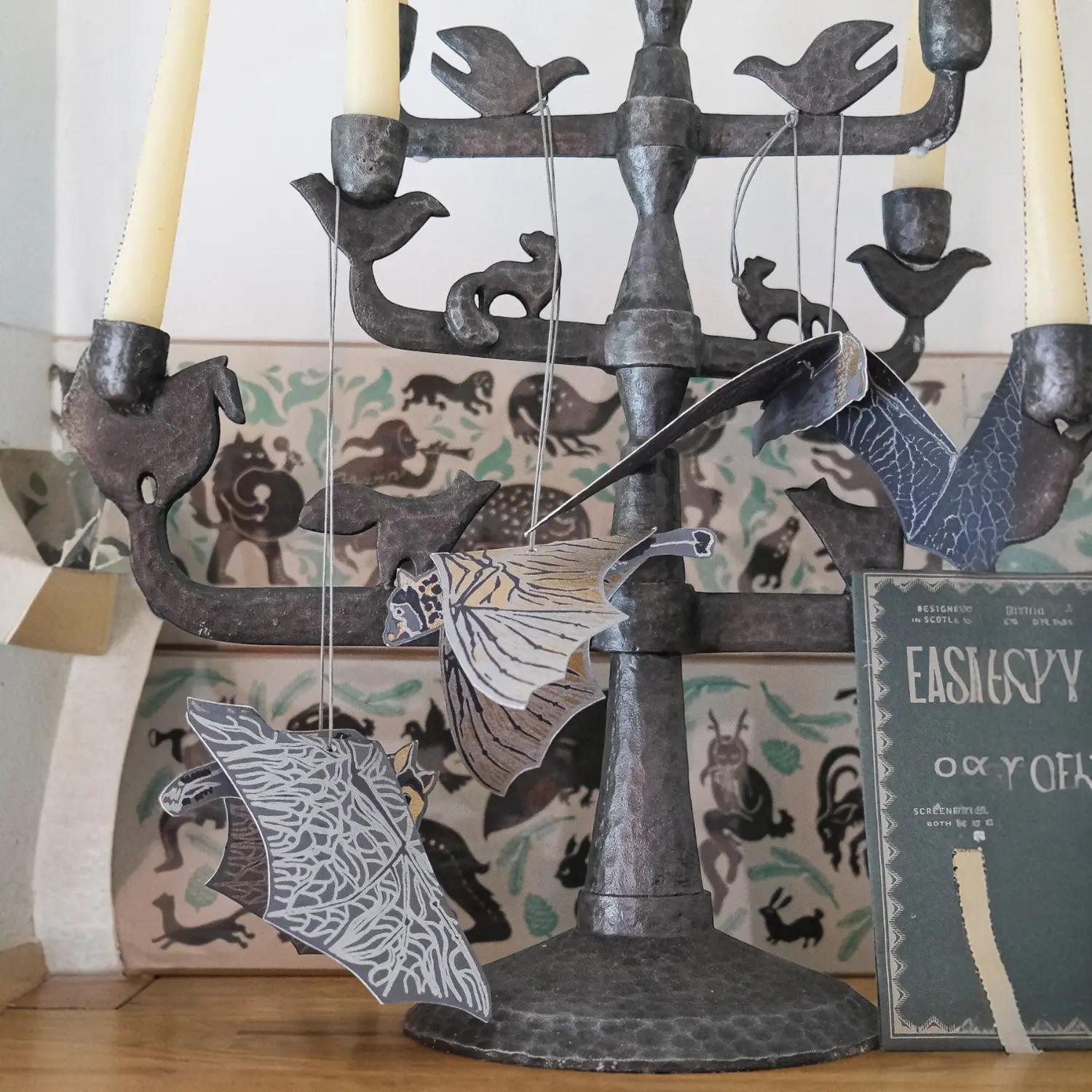 Three individual paper bats with fold out wings, ready to hang up and decorate your home for Halloween!