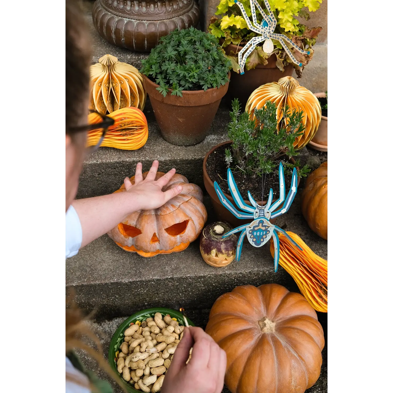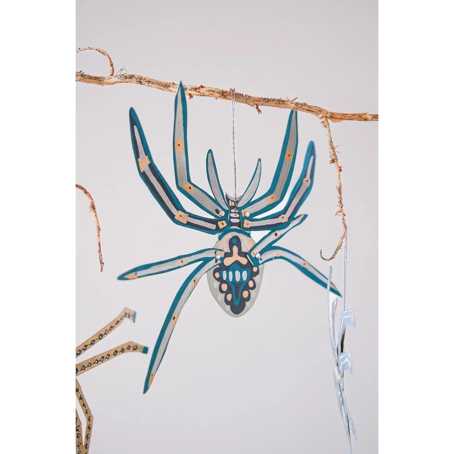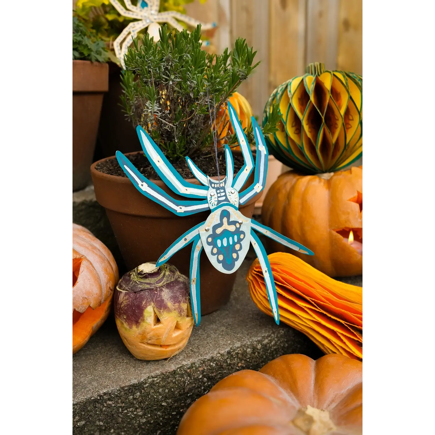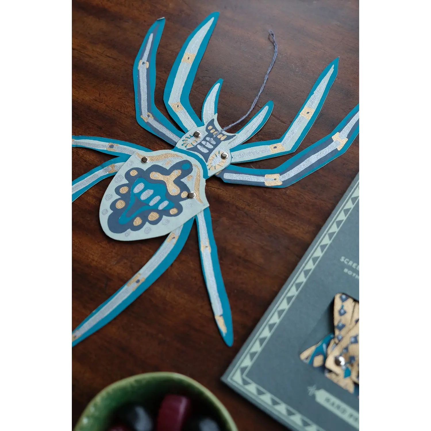 Includes four individual paper spiders, each with adjustable legs with split rivets, ready to hang up and decorate your home for Halloween!