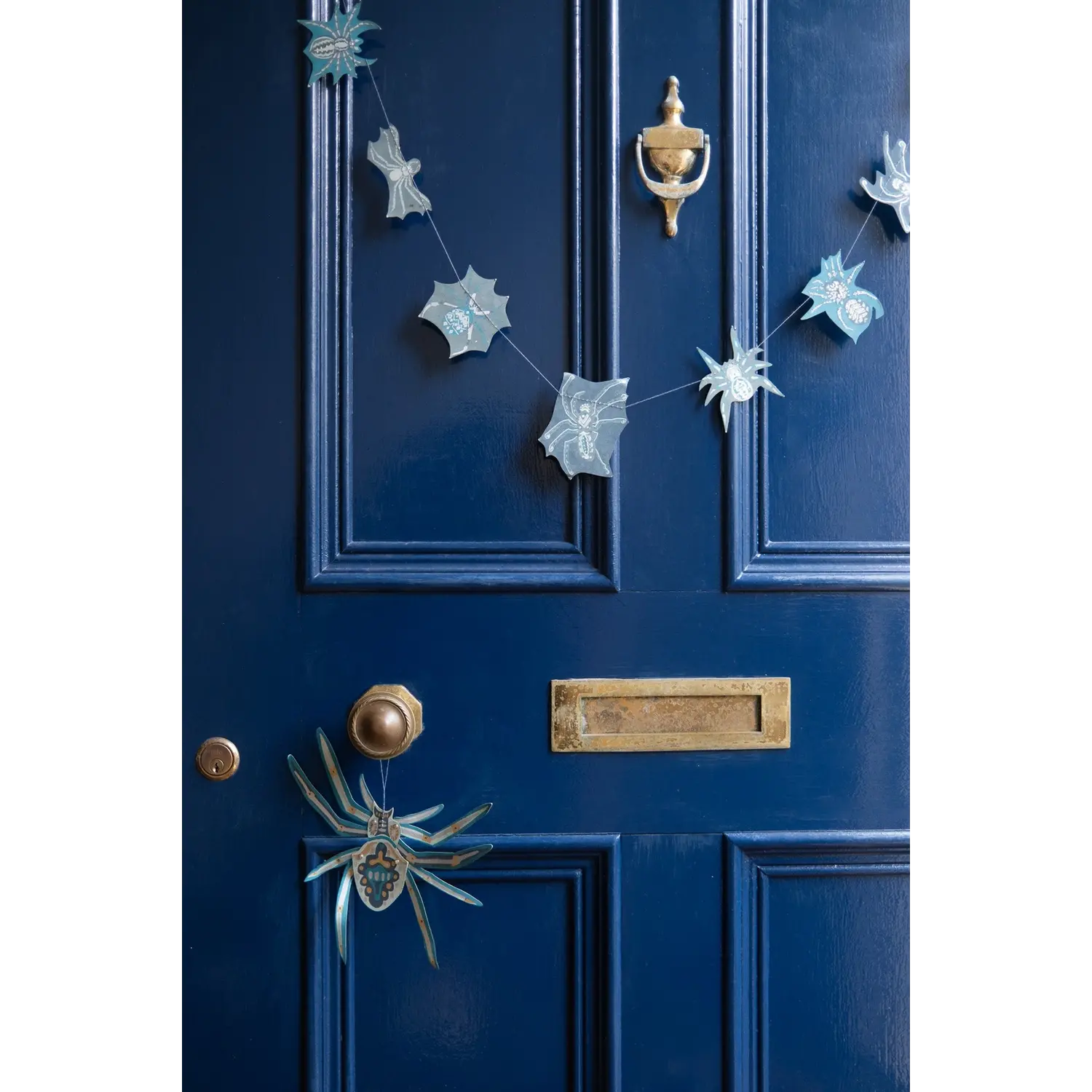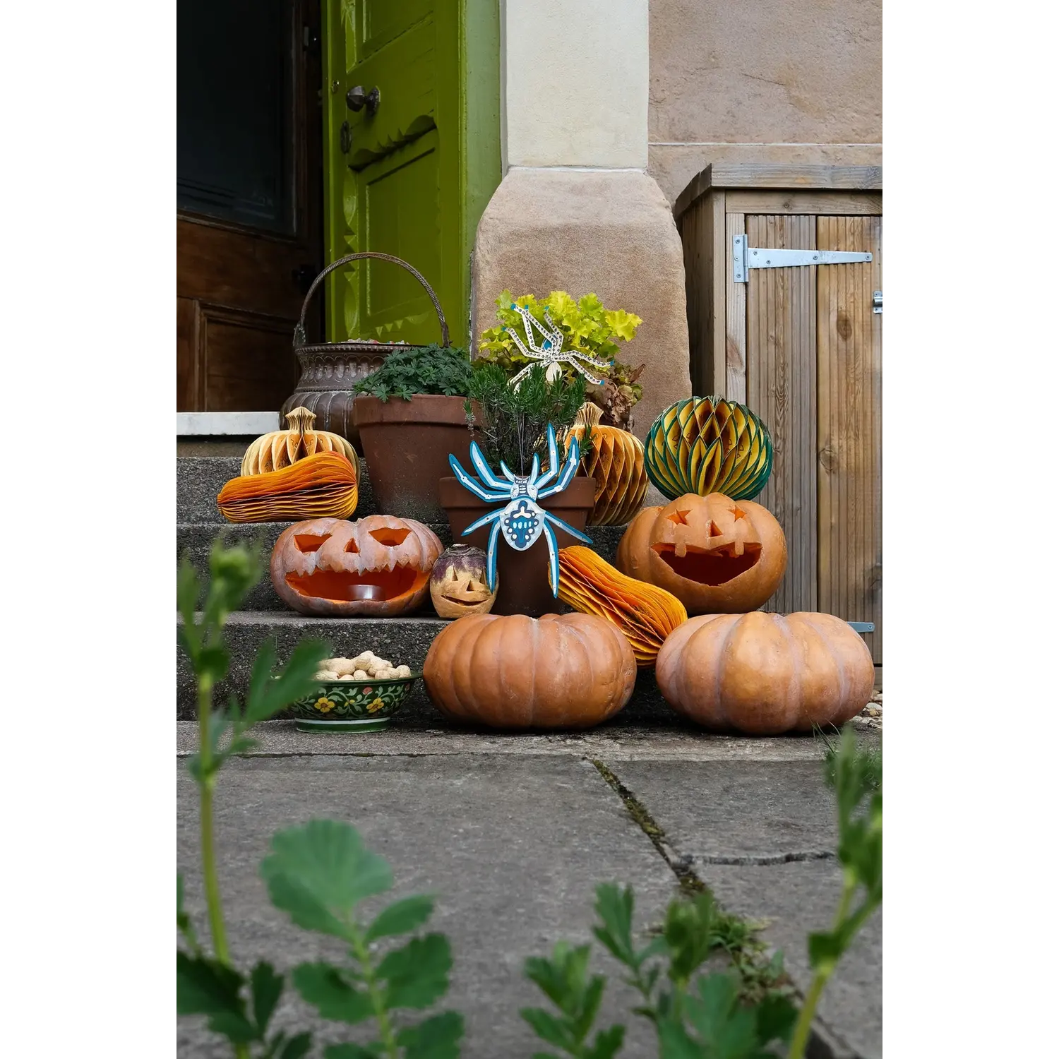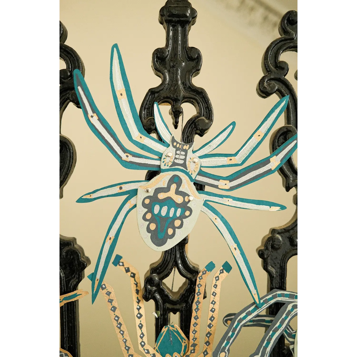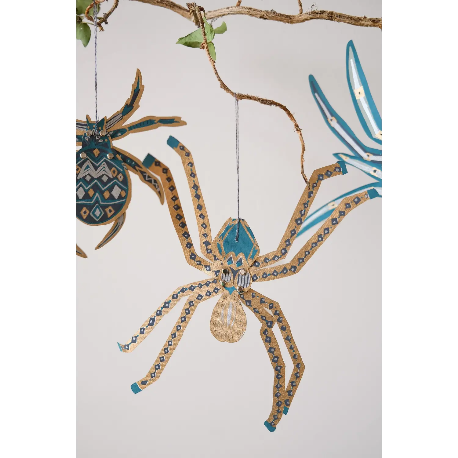 Includes four individual paper spiders, each with adjustable legs with split rivets, ready to hang up and decorate your home for Halloween!