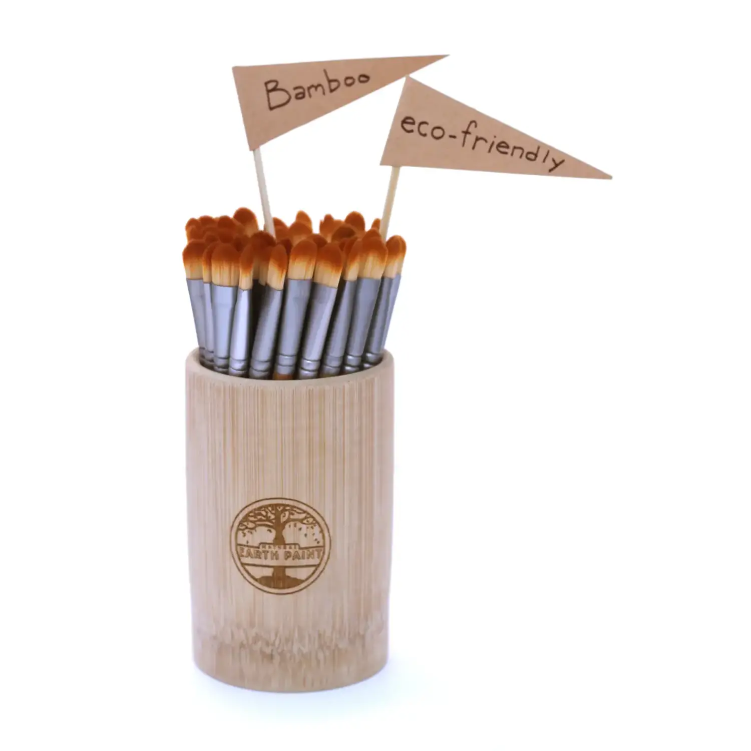 Eco-friendly paint brushes with bamboo handles and vegan bristles.