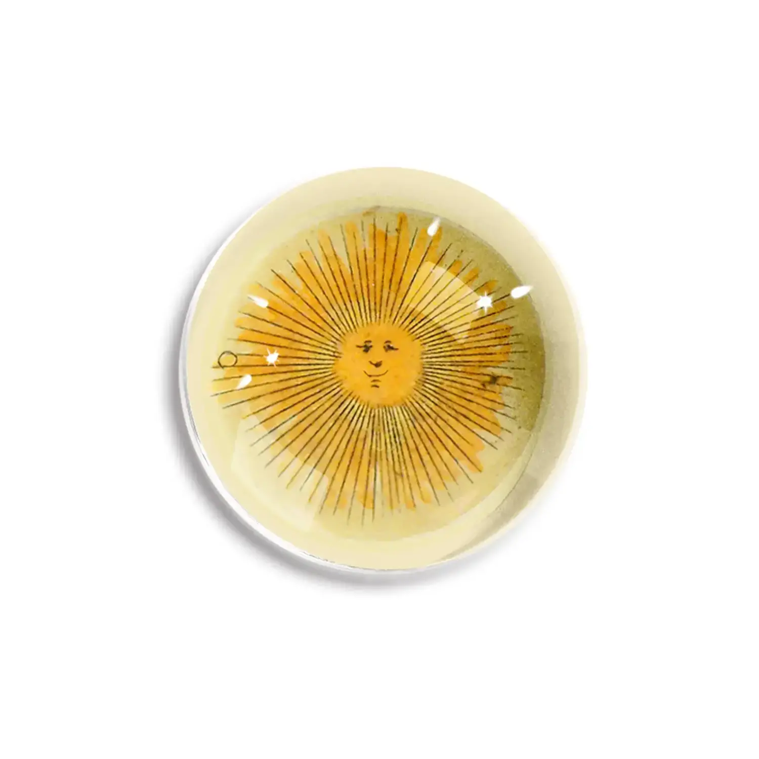 Bring a little sunshine to your desk, shelf or study with the Happy Sun Dome Paperweight- a radiant touch of vintage charm captured beneath brilliant French crystal.