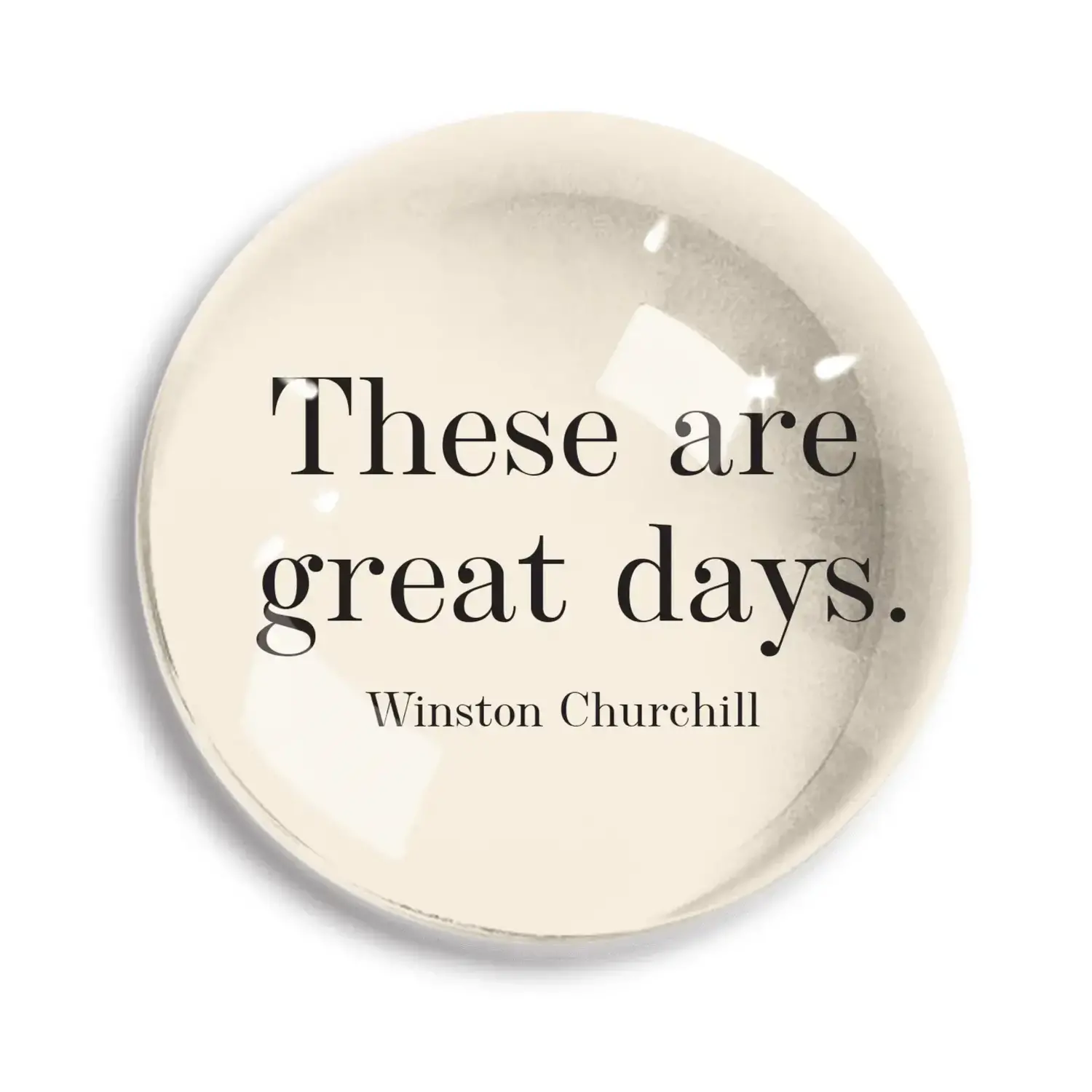This French crystal dome paperweight features vintage typeset written on a cream background and the back is felted.