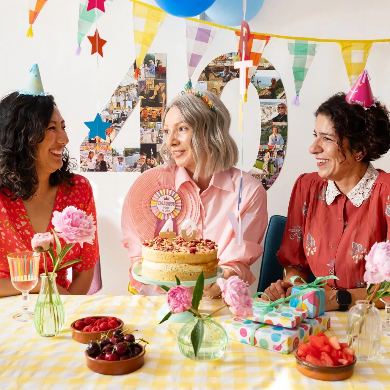 These party hats come in a pack of five bright colors, each featuring a smiley face.
