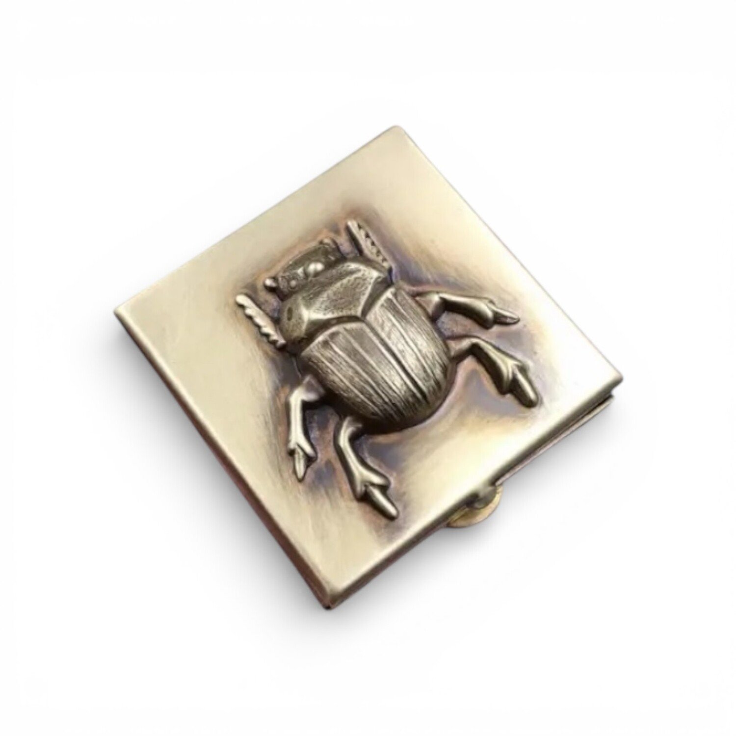 Pill Box | Square Brass 1.25" | Scarab Beetle