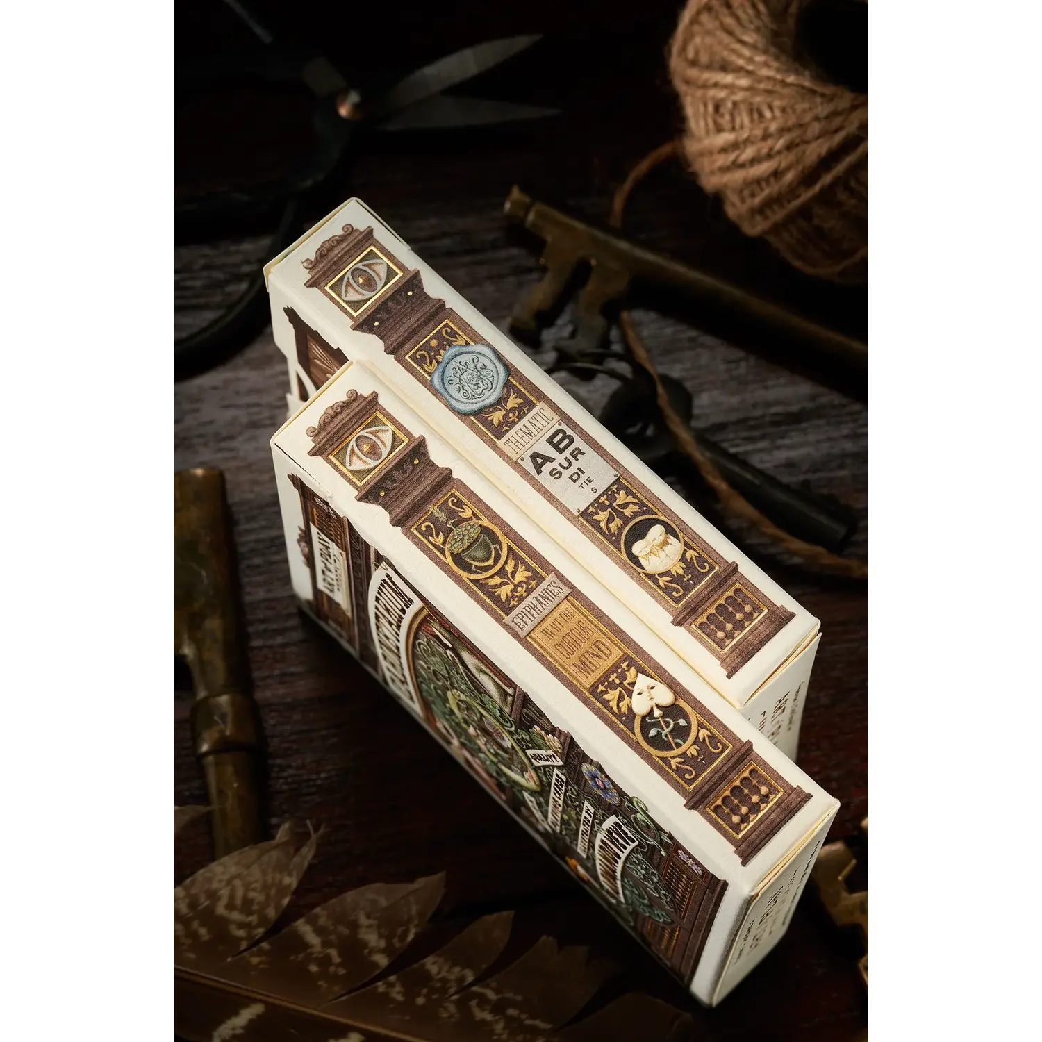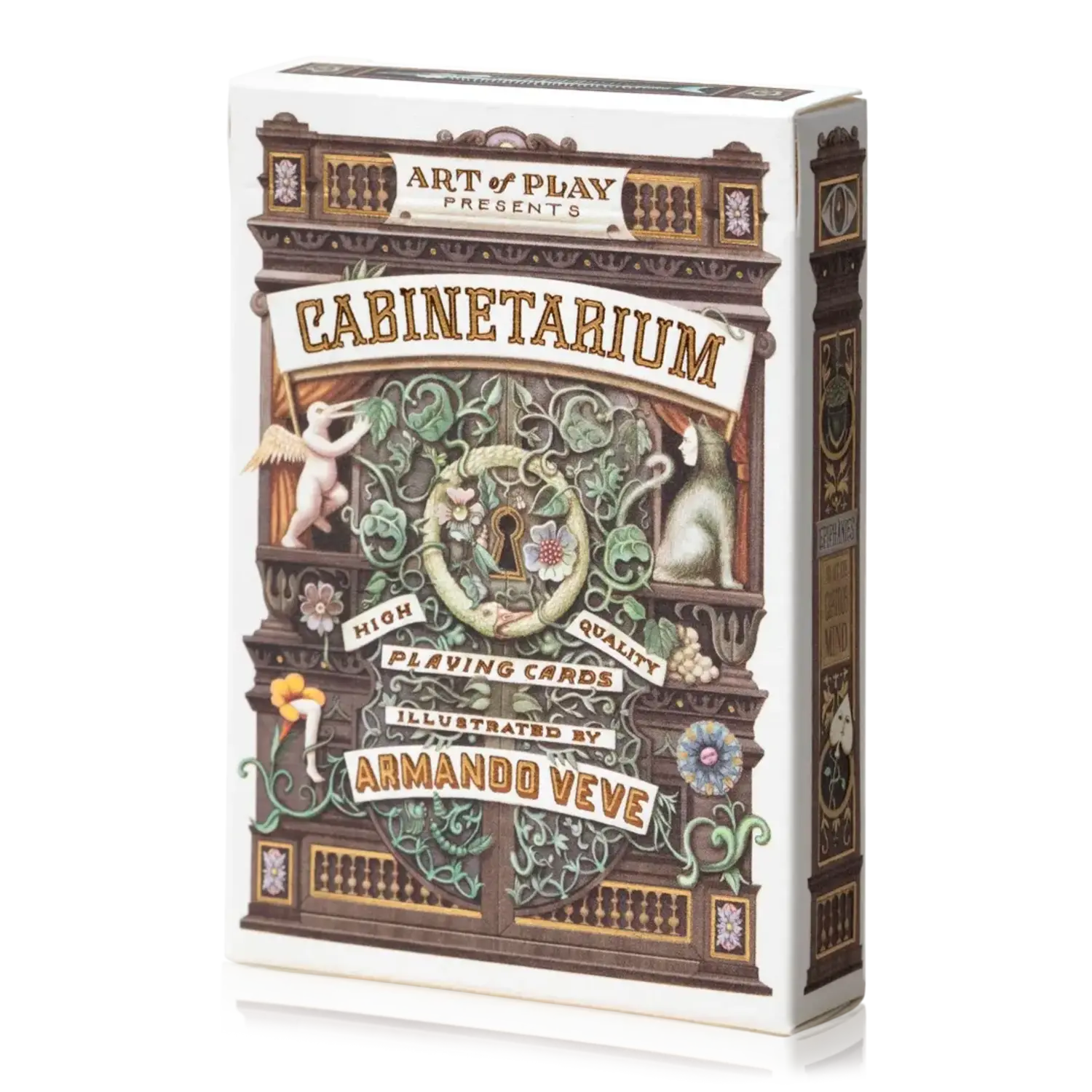 The cards of the Cabinetarium are housed in a marvelous conceptual cabinet of magnificent detail, intricately embossed and adorned with gold foil.
