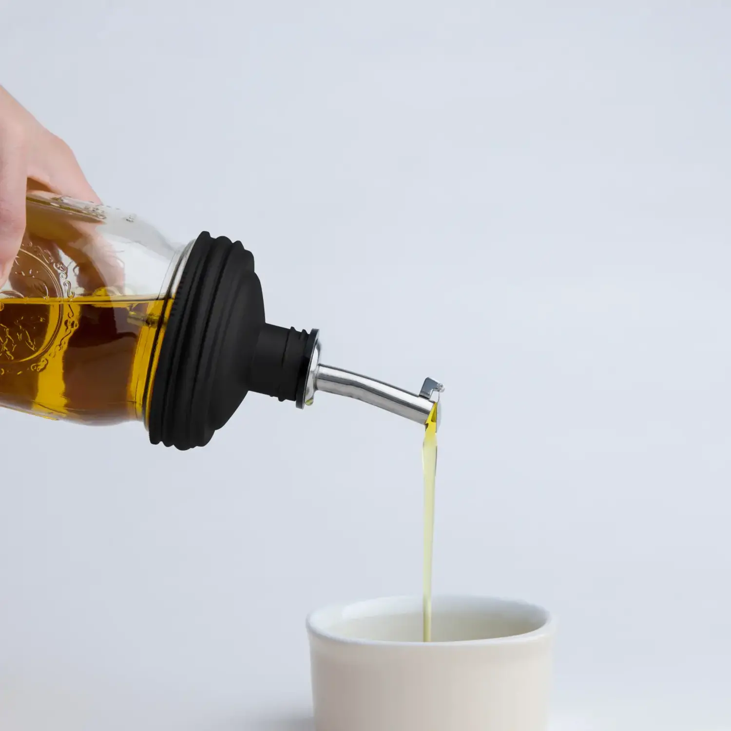 The reCAP® Mason Jar pour spout and tap works well for neatly pouring oils, syrups, honey, liquor, cocktail tinctures, vinegar, and just about any liquid frequently found in the kitchen.