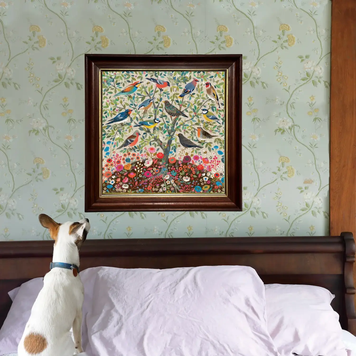 Songbirds Tree 1000 Piece Square Puzzle features an illustration that finds inspiration and patterns from William Morris and the 19th century Arts and Crafts movement.
