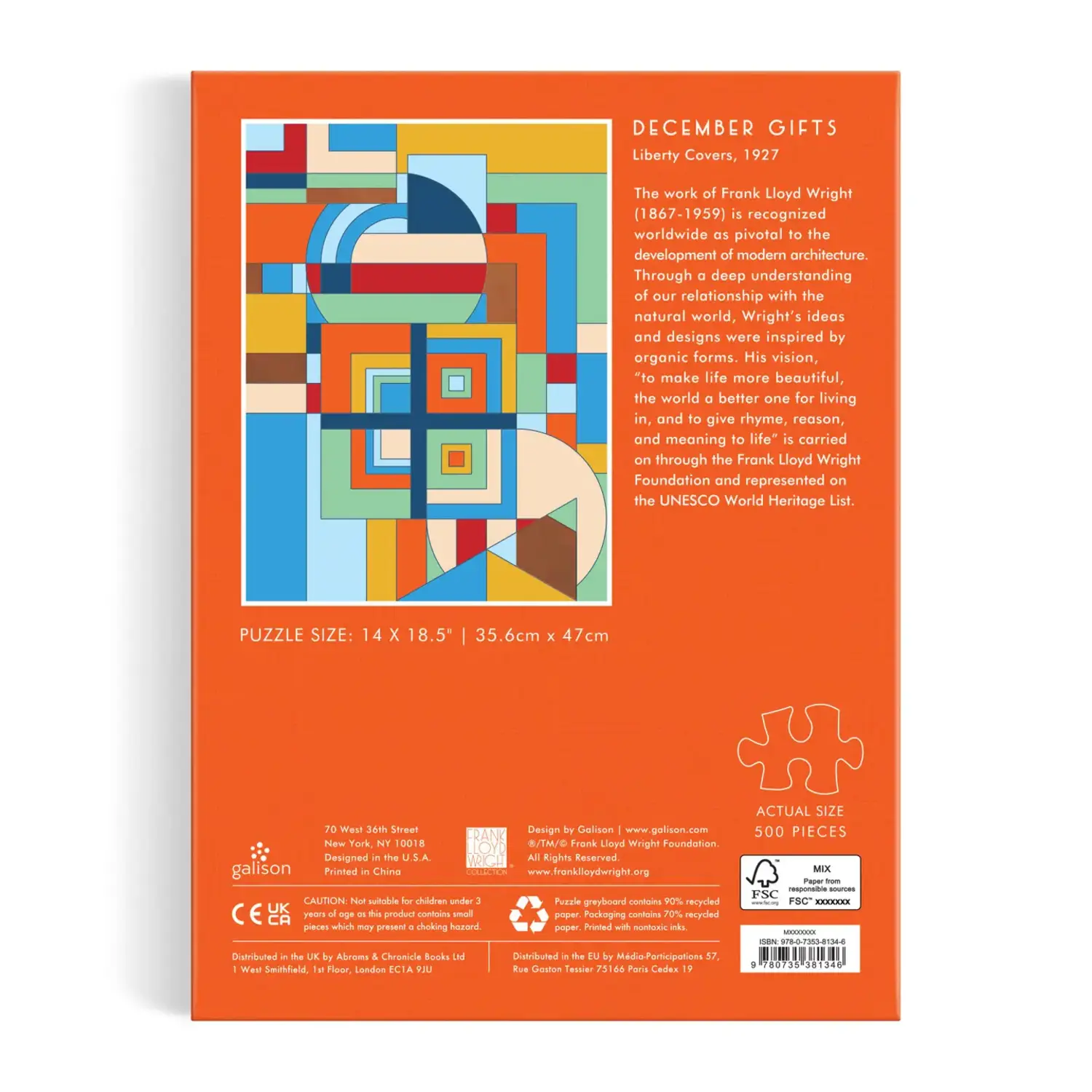Puzzle | 500-Piece Book | Frank Lloyd Wright December Gifts