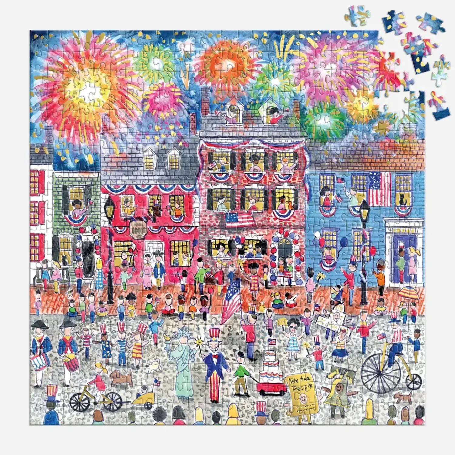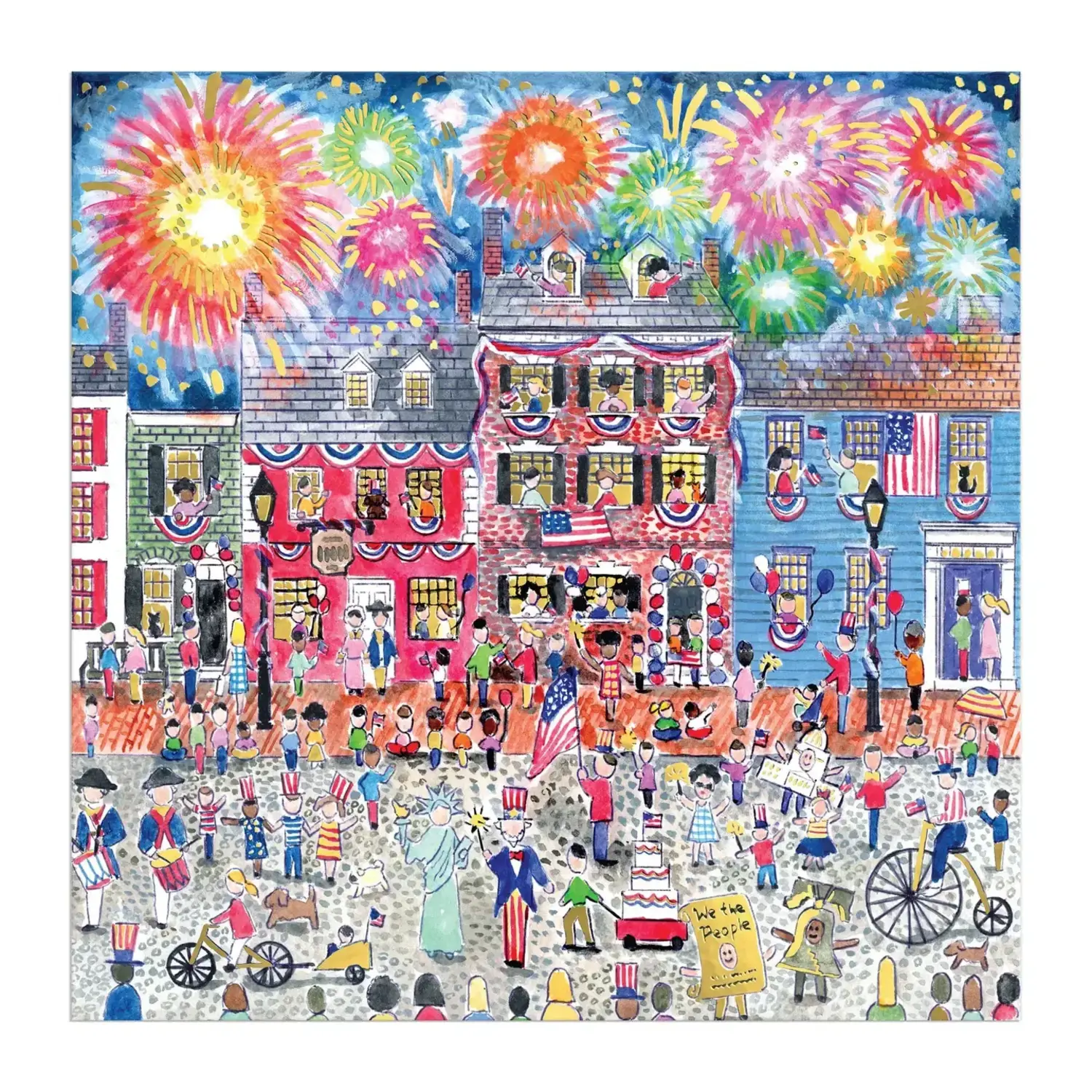 Celebrate American heritage with this vibrant 500-piece foil puzzle featuring Michael Storrings' patriotic illustration.