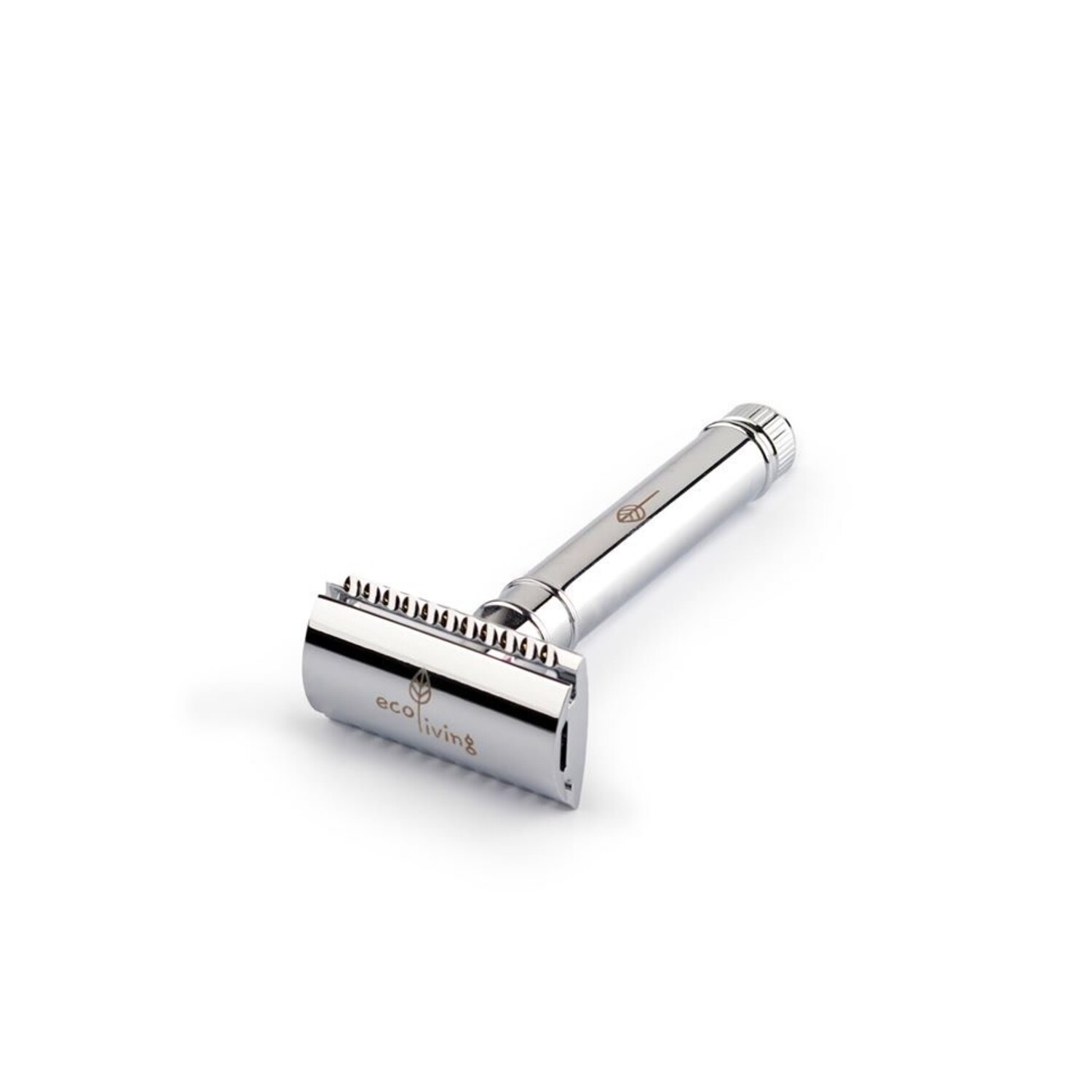 A beautiful chrome, double-edge, reusable safety razor, handmade in the UK.