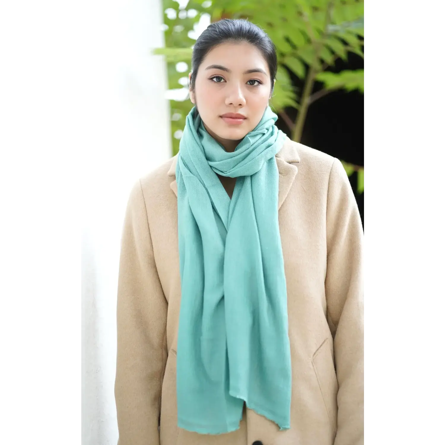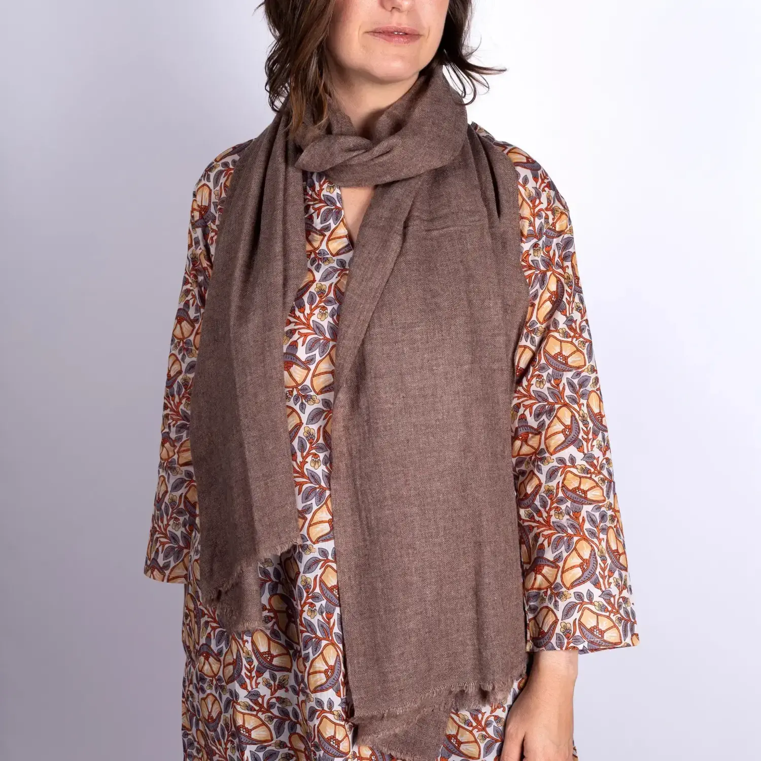 The light weight and versatile wrap is crafted from basket weave cashmere with eyelash fringe and can be worn as a scarf or draped as a wrap.