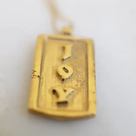 Pendant Necklace | "Joy" | Bronze + 18" Gold Fill Chain