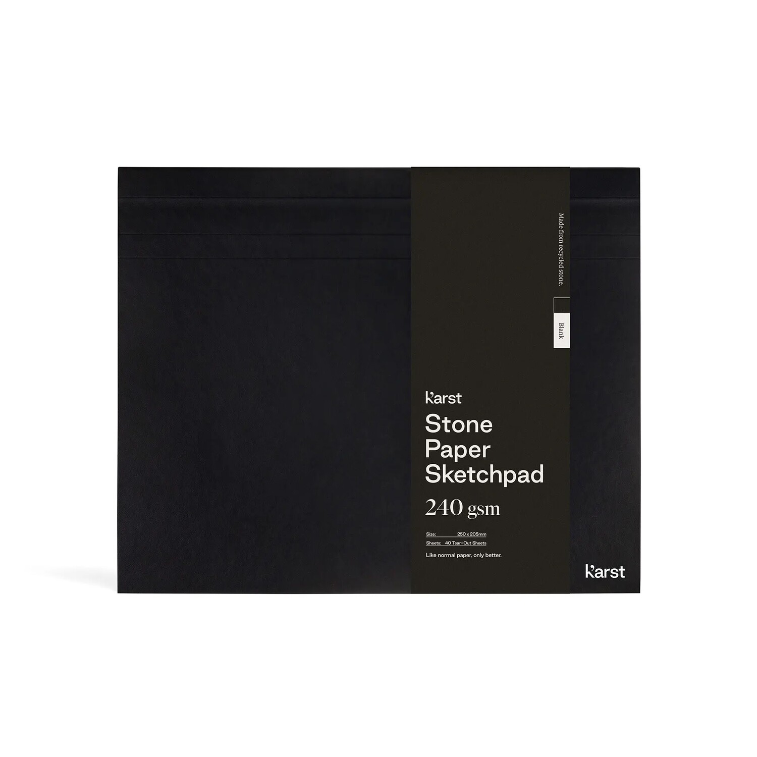 This medium-sized, top-flip, perforated Stone Paper Sketchpad is designed for versatile artists exploring wet and dry mediums. Its unique stone paper sheets are 200 micron thick (equiv. 240 gsm) and waterproof, guaranteeing absolutely zero bleed-through.