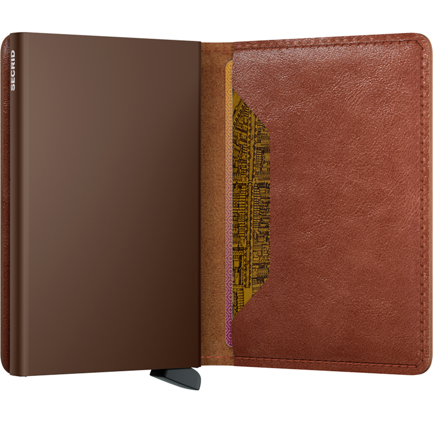 Its extra slim profile, without a button or magnet closure system, fits perfectly into every pocket.