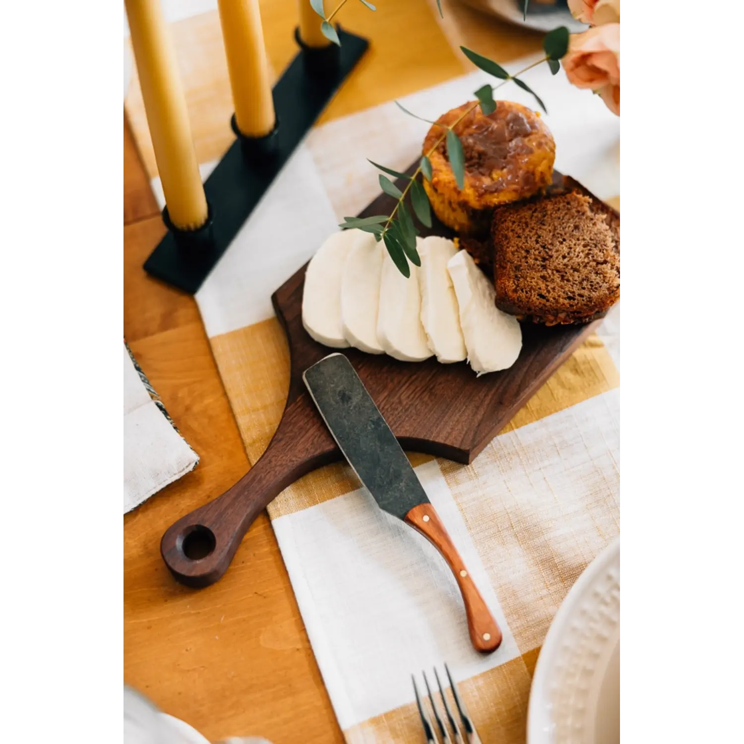 This Amish made Hand-Forged Spreader is crafted in Lancaster County, Pennsylvania from forged stainless steel and hardwood, designed as a functional and timeless tool for serving butter, soft cheeses, and spreads.