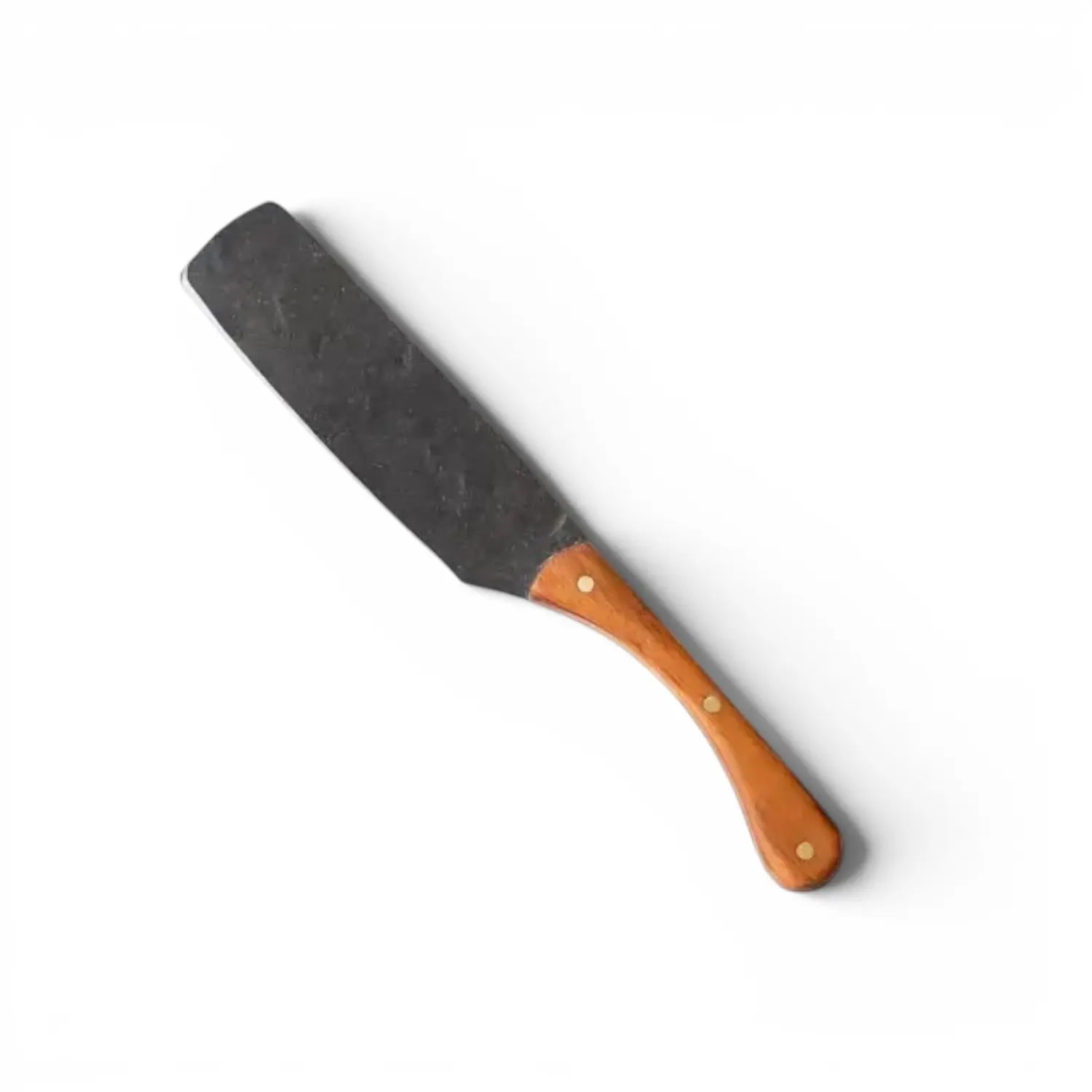 Crafted from hand-forged steel with a smooth hardwood handle, this kitchen essential is finished with food-grade oil for durability and everyday use. Its balanced weight and simple form make it both practical and refined, equally suited for daily meals or thoughtful hosting.
