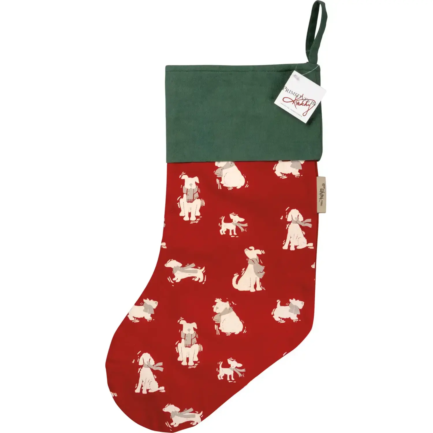 Celebrate the holidays with the double-sided cotton Christmas stocking, featuring an all-over block print of adorable dog designs.
