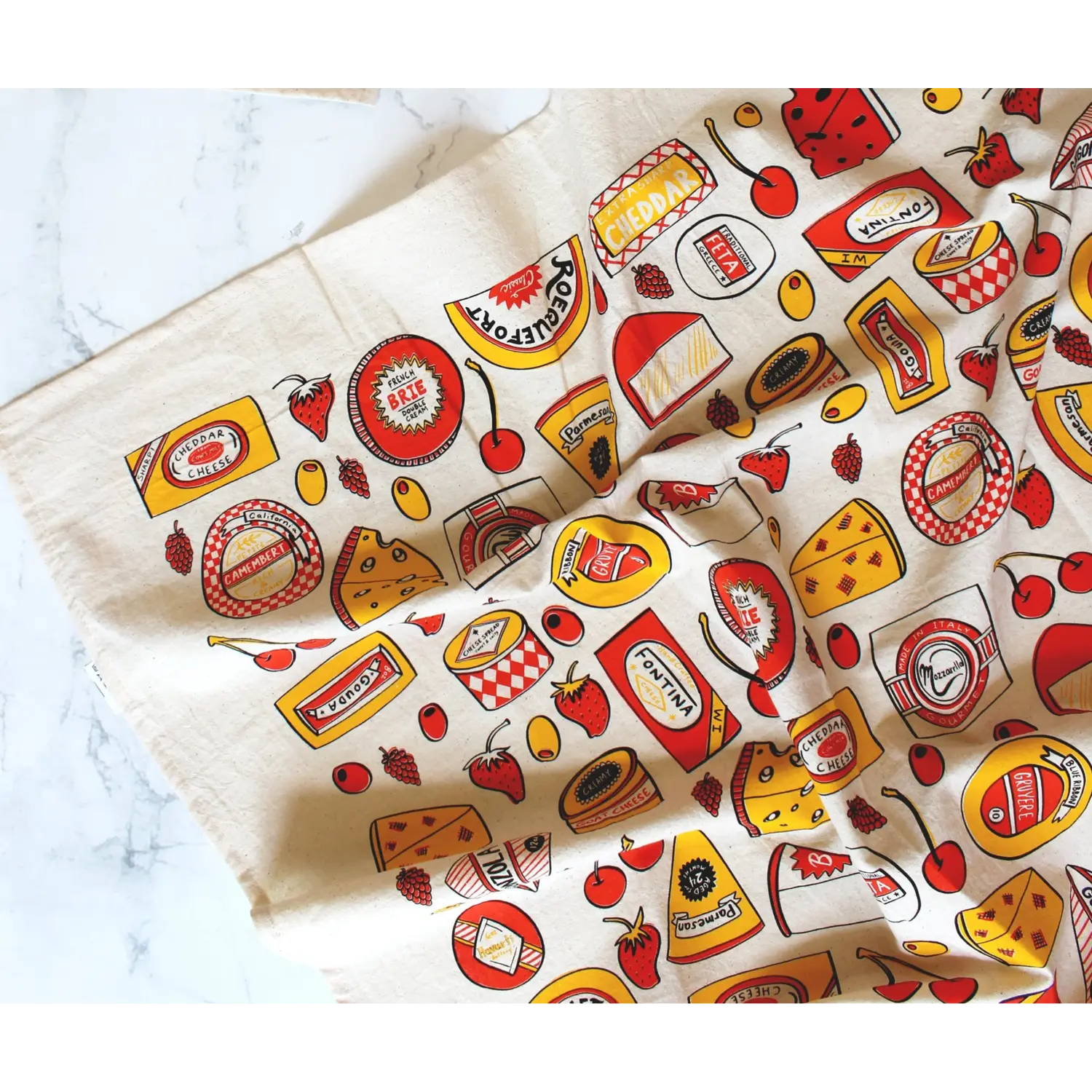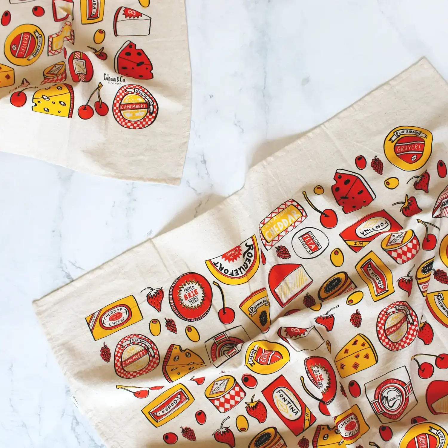 Tea Towel | Screen Printed | Cheese Shop | Yellow/Red/Brown